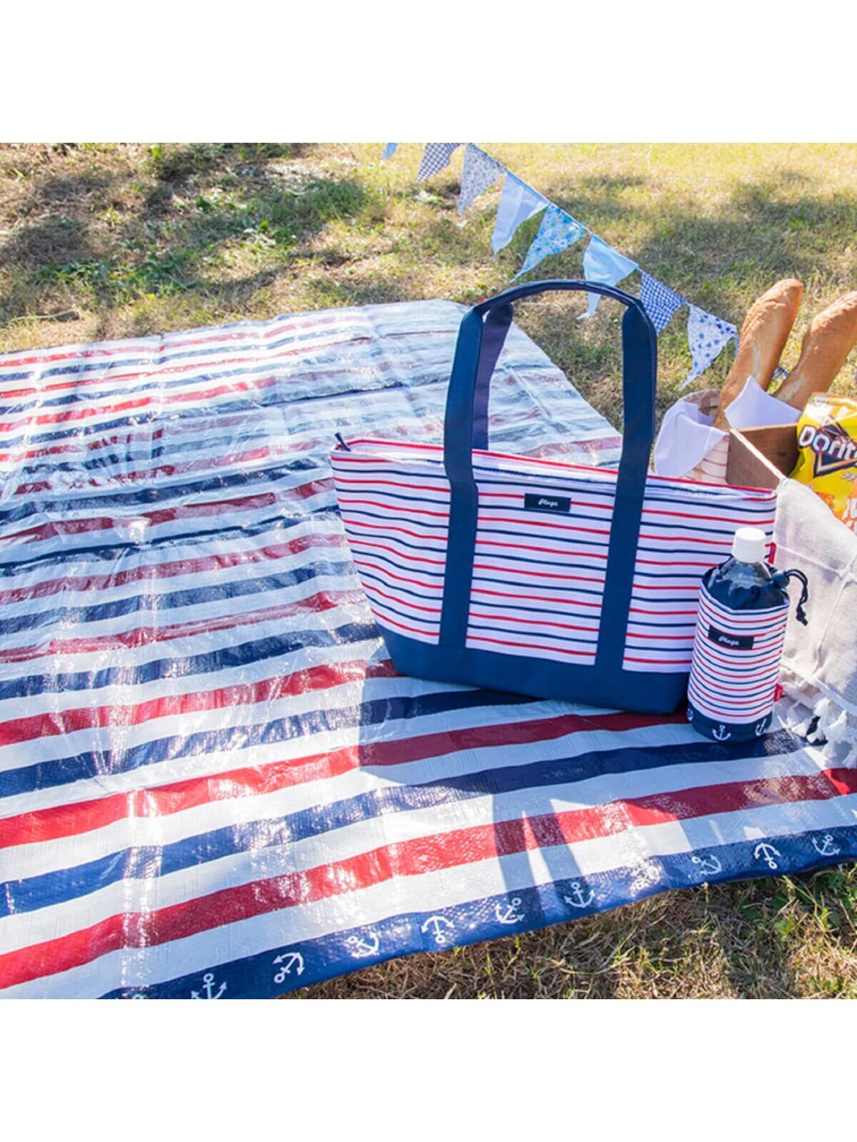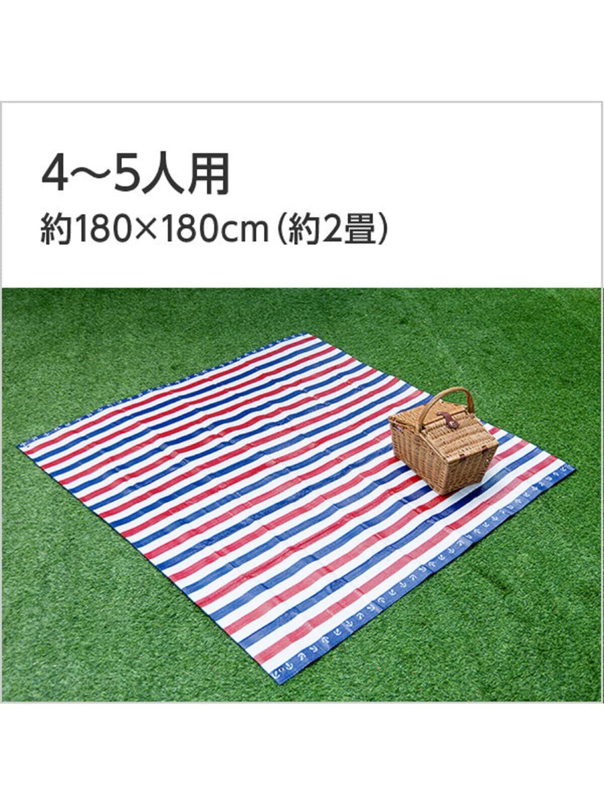 アサヒ興洋 レジャーシート 厚手 4~5人用 180×180cm 2畳 マリンボーダー 3層構造 防水 冷温気防止 やわらかい座り心地 手提げバッグ付き シートピン付き プラージュ