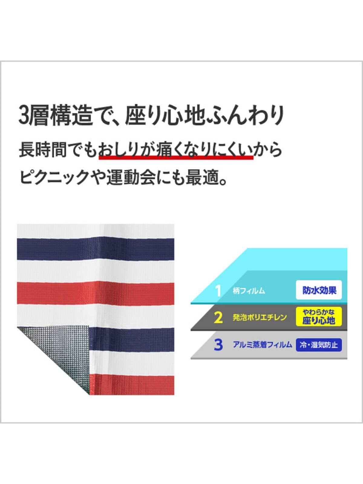 ●表面は防水効果のある柄フィルム。中は座り心地やわらかな発泡ポリエチレン。裏面は冷気・湿気を防ぐアルミ蒸着フィルム。