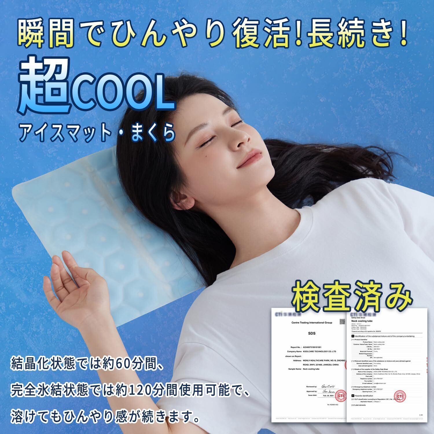【革新的 PCM 素材技術】Aooka 氷枕は暑さ対策の新革命です!従来の氷囊とは異なり、28℃以下で自然凍結する革新的PCM(相変化材料)を採用したシート状クールマットです。ひんやりマットは結露を起こさず、寝具や衣類を濡らす心配なしに、長時間クール感を維持し、夏の眠れない夜、屋内・屋外イベントでの暑さ対策に最適な冷却グッズです。
