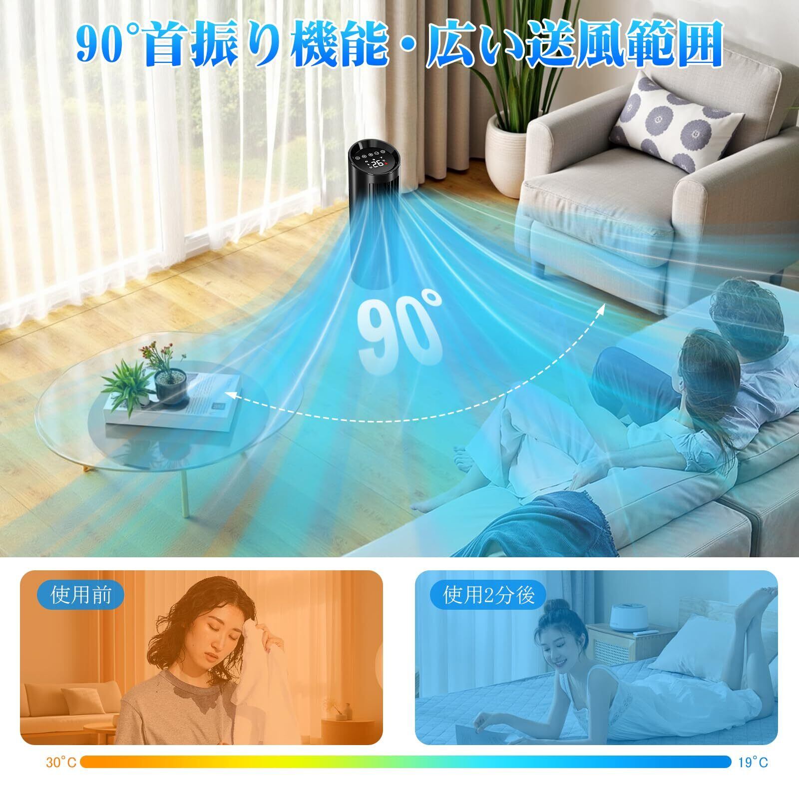 タワーファン 扇風機【2025夏新型・AI自動風・風量4段階】羽根なし タワー扇風機 縦型 スリムファン DCモーター 静音 省エネ 4つモード切替 90°首振り 12時間タイマー付き LEDディスプレイ タッチパネル ミニタワーファン 小型 おしゃれ コンパクト 卓上 リビング 寝室 脱衣所 トイレ オフィス用 リモコン付き 節電対策 PSE認証済み ブラック 取扱説明書付