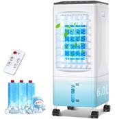 冷風機 冷風扇 強力送風【2025年革新アップ ・極上の冷感届け ・1台4役】 静音 首振り 冷風モード 風量3段階 パネル操作&リモコン式 上部給水 6.0L水タンク 切タイマー 氷結晶ボックス&キャスター付き 省エネ スポットクーラー 冷風 クーラー 節電 スリムタワー型 れいふうき リビング 子供部屋 キッチン 寝室適用 暑い夏 熱中症対策 ギフト 使い勝手 説明書 ホワイト