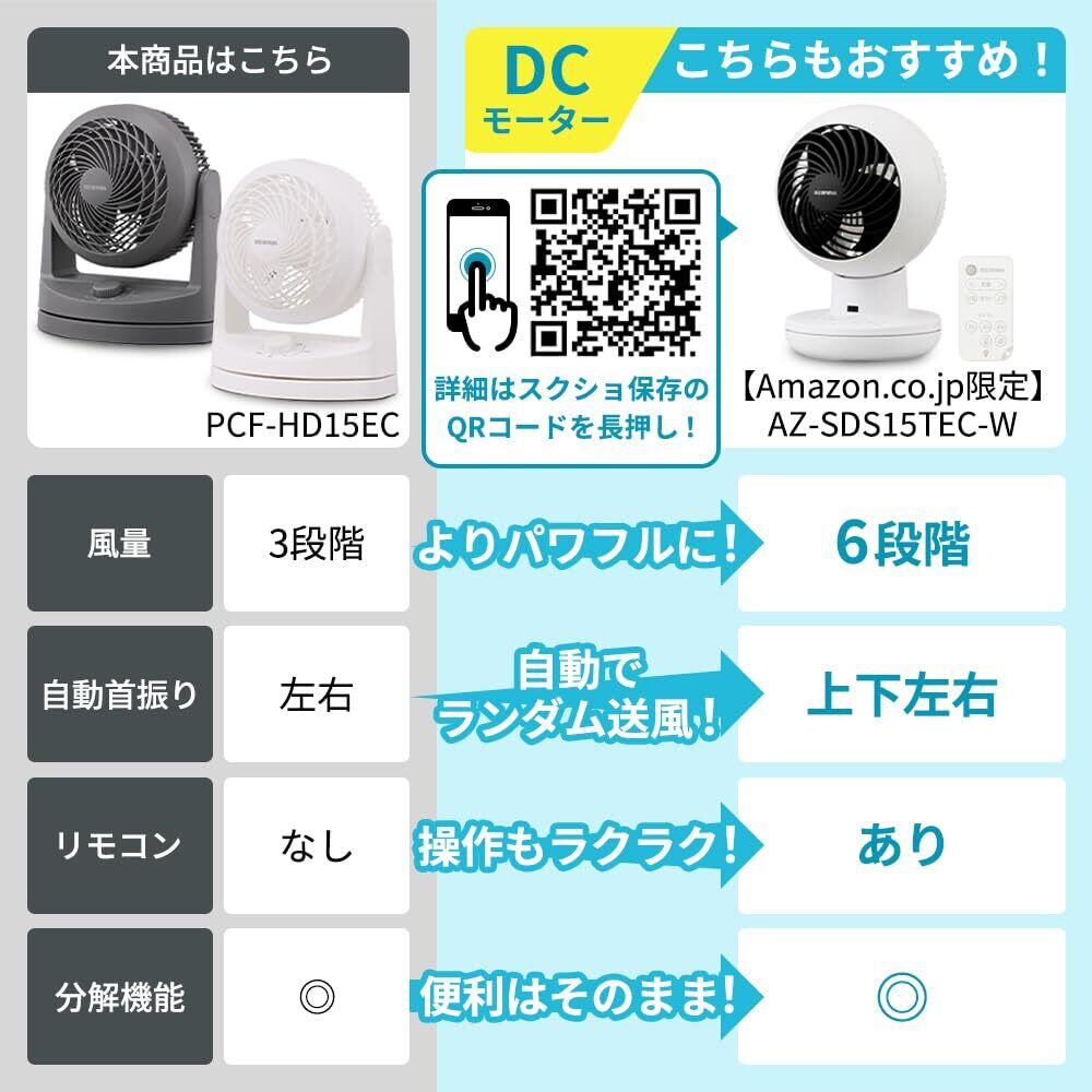 アイリスオーヤマ サーキュレーター 扇風機 静音 左右首振り 8畳 お手入れ簡単 PCF-HD15EC-W