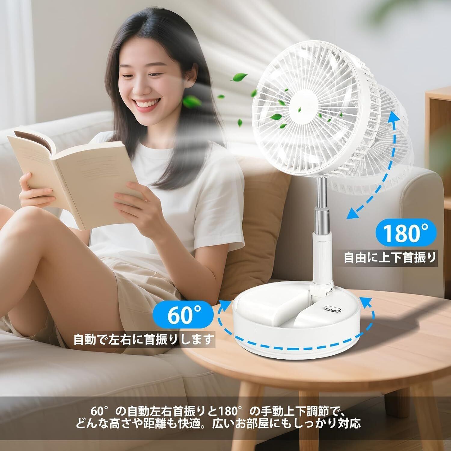 扇風機 折り畳み 7200mAhバッテリーリビング Type-c 電式 折りたたみ扇風機 コードレス リビング 風量4段階調節 リズム風 小型 首振り サーキュレーター 小型 コンパクトに収納 室内 アウトドアに適用 ホワイト 折り畳み 無段階伸縮式首振り 卓上コードレス タイマー付き 静音 リモコン付き 高さ自由調節 (1) | KSショップ