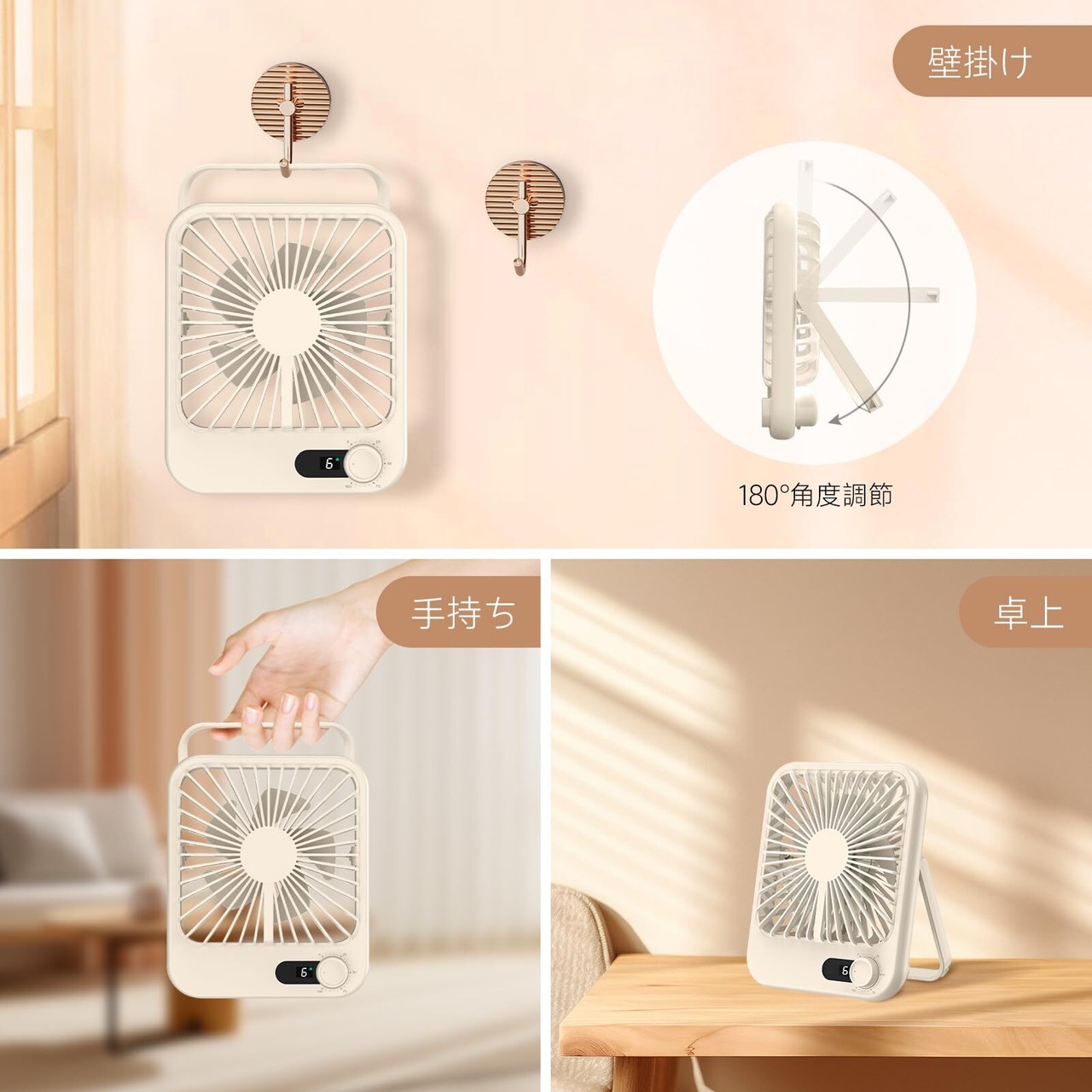 【2000mAhバッテリー内蔵・180°調節スタンド】iNeiboデスク扇風機は2000mAhのバッテリー内蔵され、フル充電時、最大約2~6時間のコードレスで利用可能。このデスクファンは充電しながらも利用可能、室内でもアウトドアでも使える便利な充電式USB扇風機です。また、このミニUSBファンは180°角度調整が可能で、どんなシーンでも快適な風を届けてくれます、お好みによって、手持ち扇風機、卓上扇風機、壁掛け扇風機、吊り下げ扇風機にも変身可能、一台4役、とても使用便利。