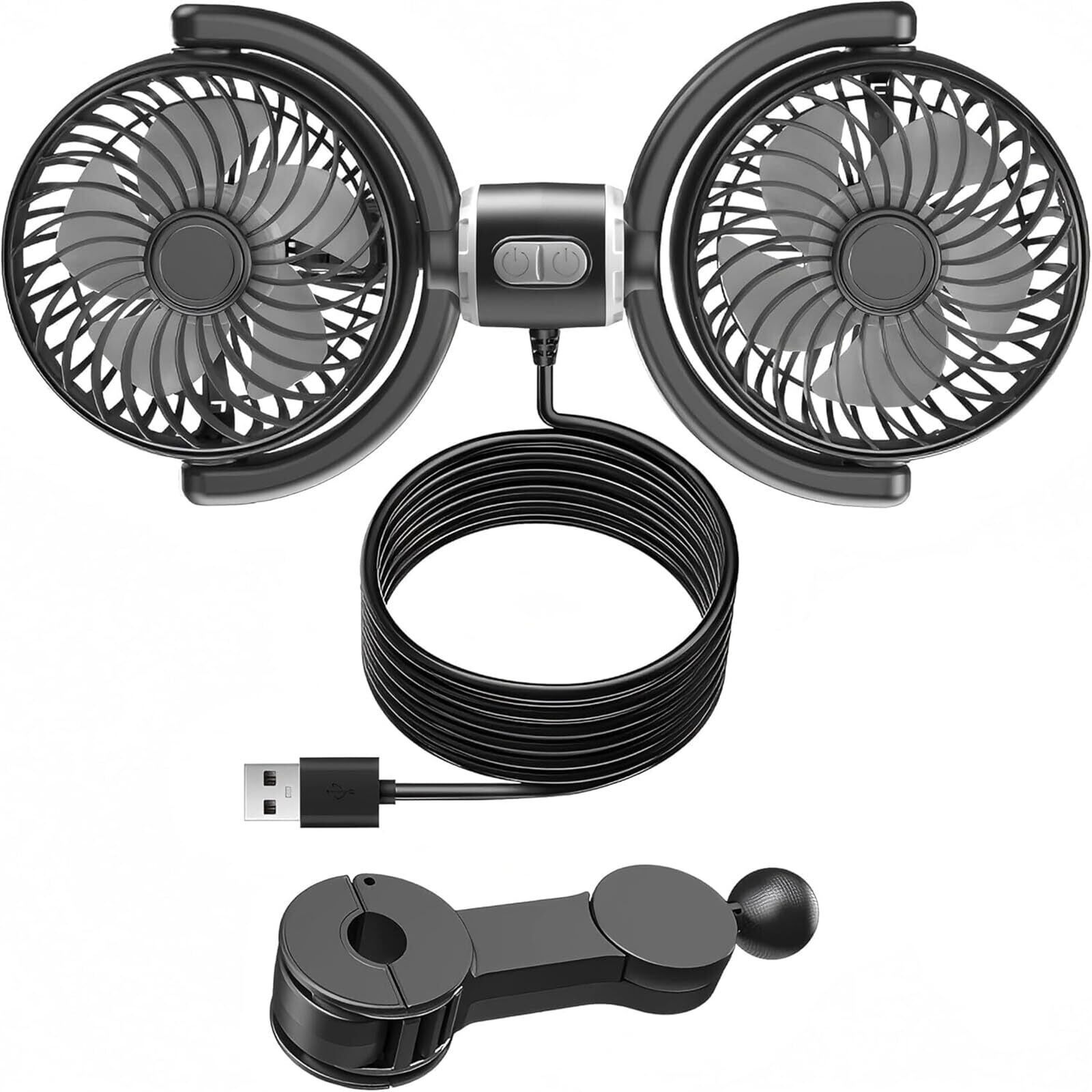 車載扇風機 【2025年夏新登場-夏新登場-前/後部座席用】 車 扇風機3段階風量 USB給電 車載ファン 強力送風 低騒音双頭車載ファン ツーファンタイプ 3段階風量・強力送風 低騒音 360°角度調整可能 ヘッドレストファン 車内夏対策 の暑さ対策 車 自動車用 父の日 母の日 記念日 誕生日プレゼント配線延長バージョン 取付簡単 (前/後部座席用) | KSショップ