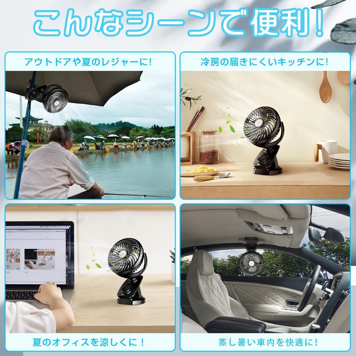 【自動首振り&5000mAh】 卓上扇風機 クリップ 小型扇風機 usb充電式 静音 風量無段階調節 360°角度調整 充電式扇風機 コードレス 最長60時間連続使用 強力 アロマ対応 オフィス 車 アウトドア 直径14.5cm ブラック