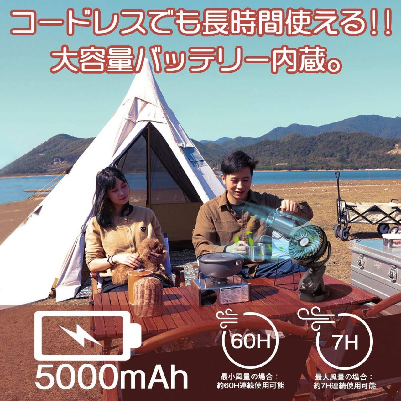【自動首振り&5000mAh】 卓上扇風機 クリップ 小型扇風機 usb充電式 静音 風量無段階調節 360°角度調整 充電式扇風機 コードレス 最長60時間連続使用 強力 アロマ対応 オフィス 車 アウトドア 直径14.5cm ブラック | KSショップ