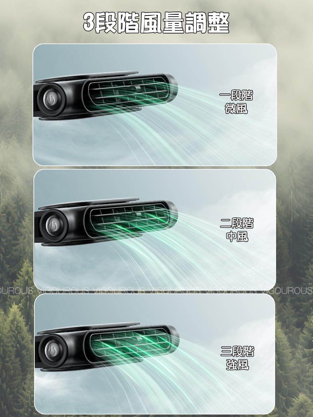 ️【強力送風・3段階風量調節】 弱・中・強の3段階風量をボタンひとつで簡単切替。シーンに応じて最適な風量を選べます。前席・後席どちらにも涼しい風を届け、暑いドライブ中も快適さをキープ。(本体の向きを調整すれば、後部座席にも直接送風可能です)
