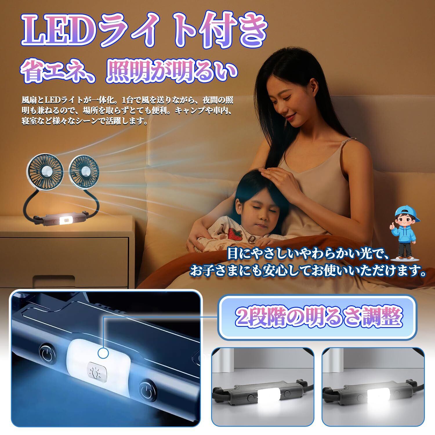 SMARTABL 2025新型 車載扇風機 車載ファン シガーソケット/USB 両用 後部座席 360度回転 LEDライド付き 3段階風量長配線 扇風機 車 ヘッドレストファン 双頭タイプ 静音性アップ 取付簡単 父の日ギフト ドライブ 通勤 日本語説明書付き