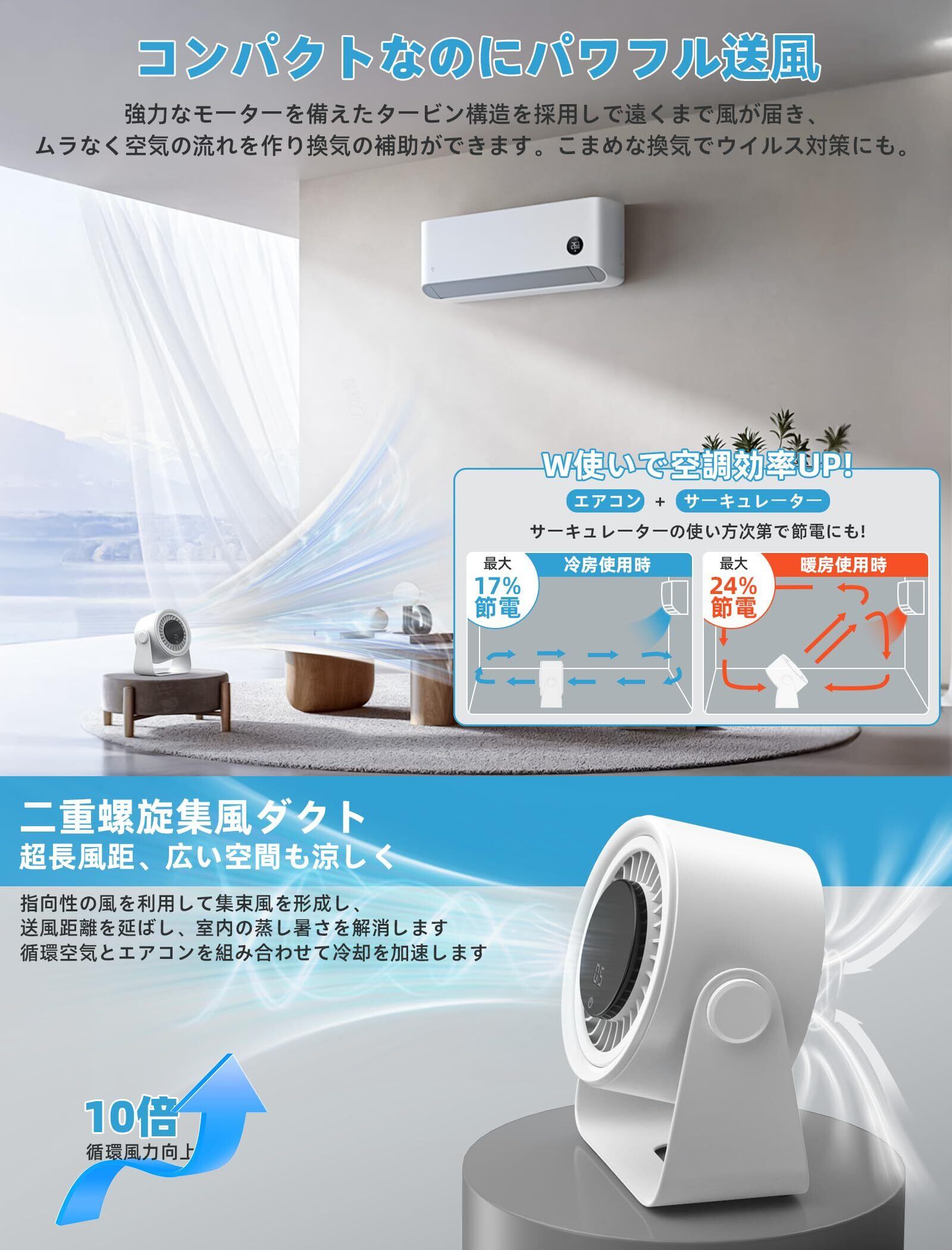 【5段階風量調節・超静音設計】5段階の風量調節が可能な卓上扇風機、微風から強風までお好みに合わせて風力を設定でき、お部屋の空気を循環させます。小型サイズで場所を取らず、壁掛け扇風機としても使用できます。静音設計なので、ささやき声のように静かに運転し、気になりません。就寝中も静かな環境を提供し、仕事の邪魔になることもありません。
