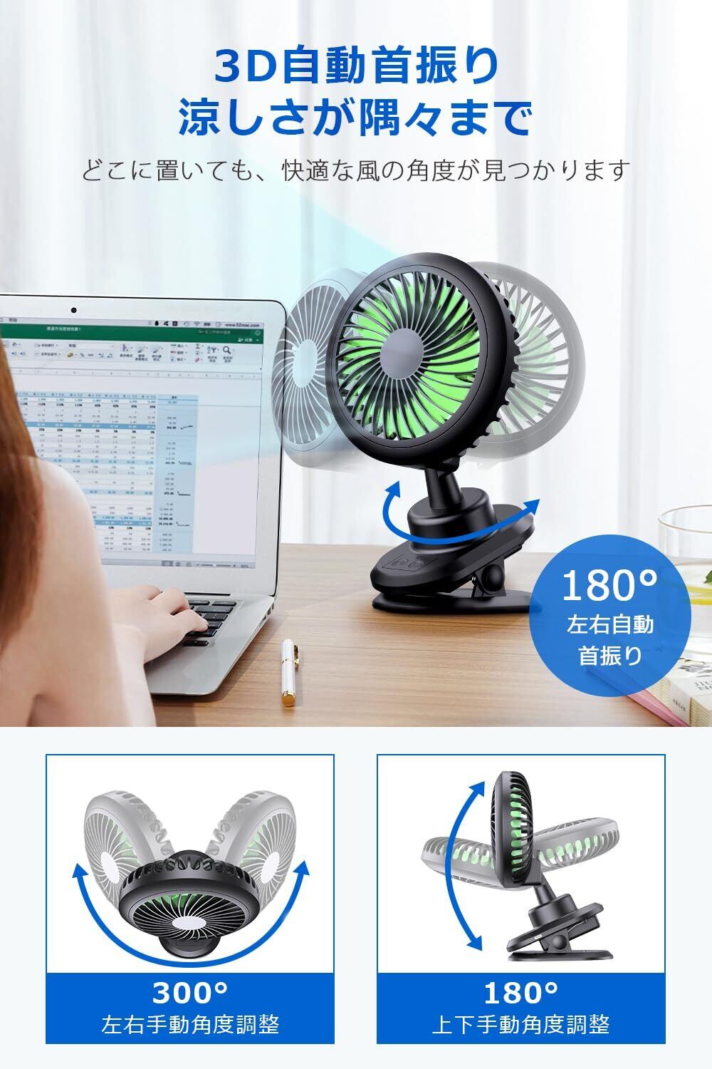 クリップ扇風機 卓上扇風機 【2025夏新開発&3D自動首振り&10000mAh電池内蔵】 充電式 usbファン 65時間連続使用 15db静音 7枚羽根 超強風 風量4段階調節 卓上ファン Type-C急速充電 サーキュレーター オフィス 車用 キャンプ アウトドア 熱中症対策 母の日 父の日 プレゼント