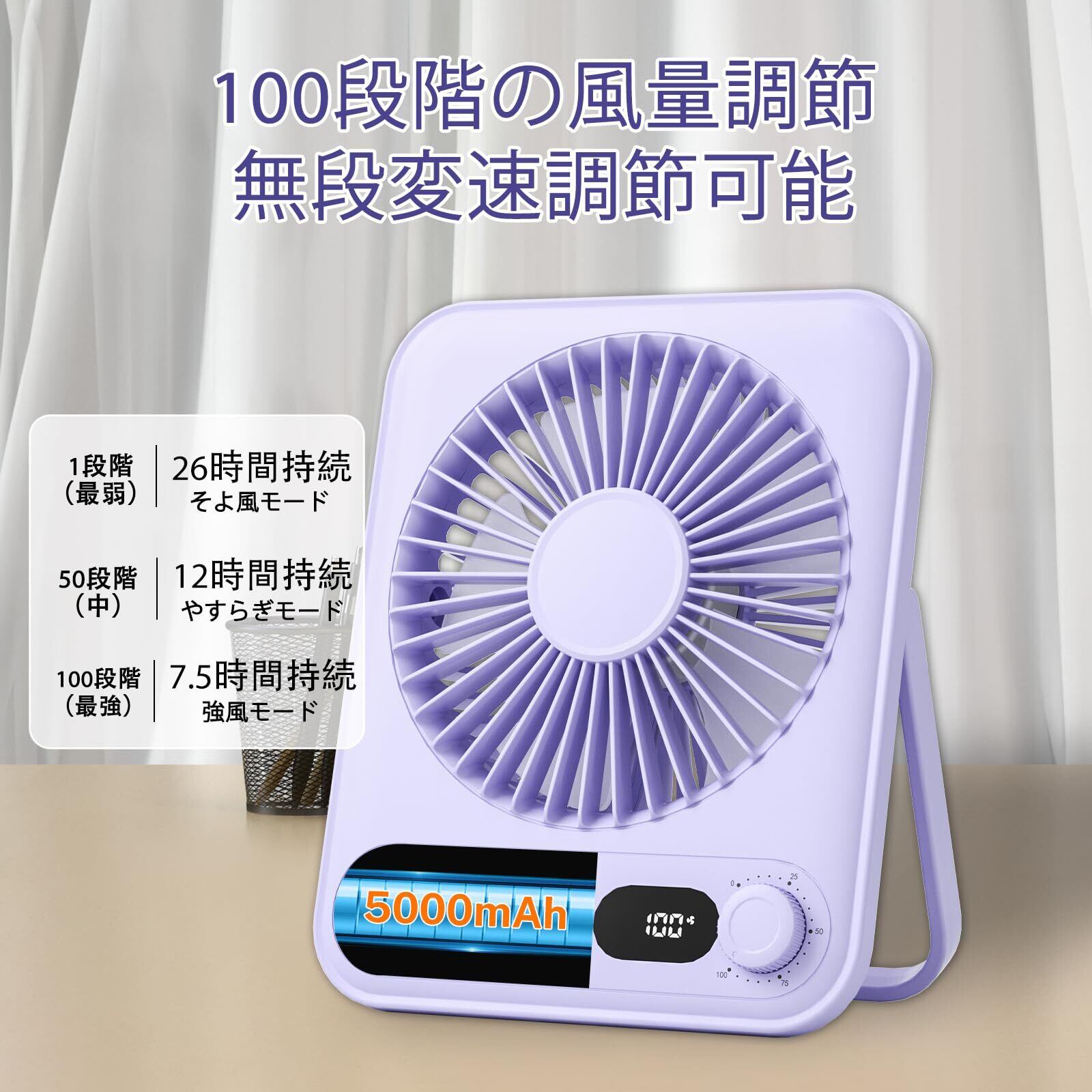 卓上扇風機 小型 静音 2025升级款充電式卓上ファン 5000mAh大容量 電量&風速表示 100無段階風量調節 強力ブラシレスモーター Type-C急速充電 USB扇風機 コンパクト オフィス/寝室/キャンプ/アウトドア デスクファン ミニ扇風機 熱中症対策