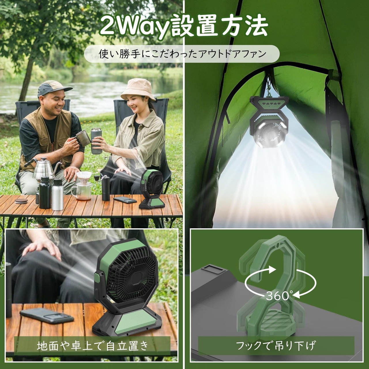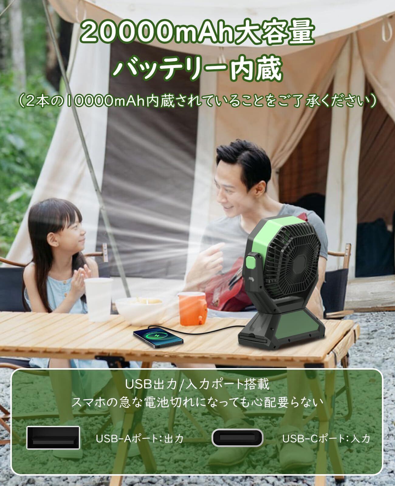 MoKo キャンプ 扇風機 20000mAh充電池内蔵 アウトドアファン Type-C充電式 4段階風量調節 強力送風 自動首振り リモコン付き タイマー設定 静音 卓上/吊り下げ2Way設置 スマホに給電 3色LEDライト 残量表示 暑さ対策 キャンプ用品 夏のキャンプ/釣り/バーベキュー/海辺/火おこし/虫よけ対策/車中泊/災害対策 | KSショップ