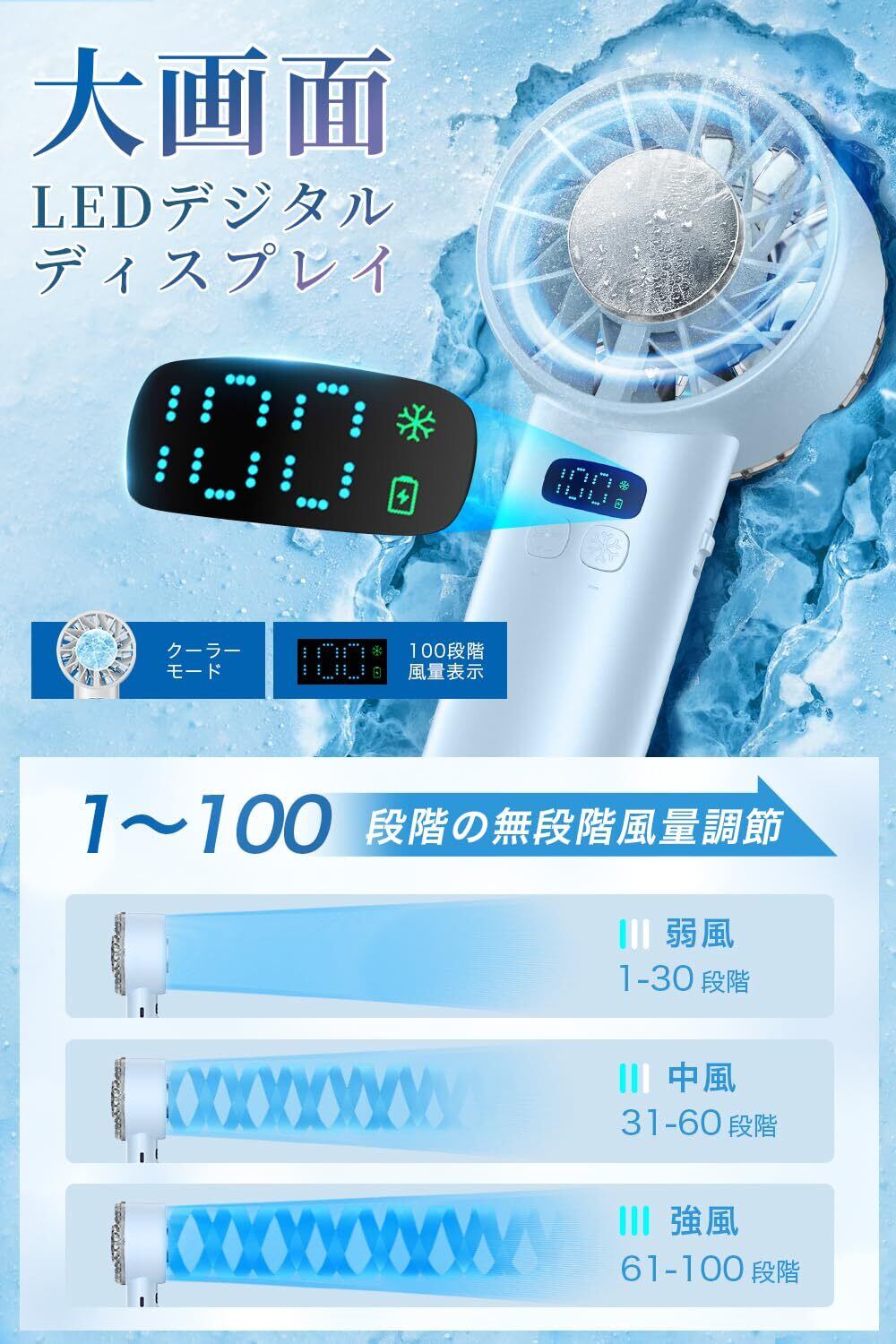 【2025年夏新登場 1秒冷感】 ハンディファン 冷却プレート 手持ち扇風機 携帯扇風機冷却ファン 6000mAh大容量 卓上 せんぷうき 接触冷感 クーラー機能 静音 強力 小型 大風量 100無階段風量調節 Type-C急速充電 ストラップ付き LEDディスプレイ 持ち運び便利 熱中症対策 アウトドア 暑さ対策(ブルー)