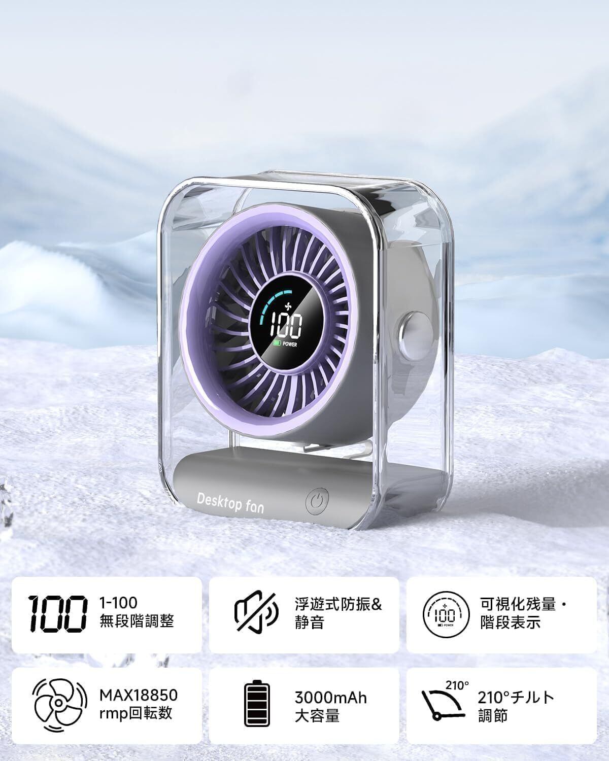 ViSSKO 卓上扇風機 充電式 100段階風量 軽量アクリル 静音 3000mAh大容量 7枚羽根 強力送風 液晶画面 コンパクト長時間連続使用 日本語取扱説明書付 オフィス/寝室/キッチン/アウトドア用 | KSショップ