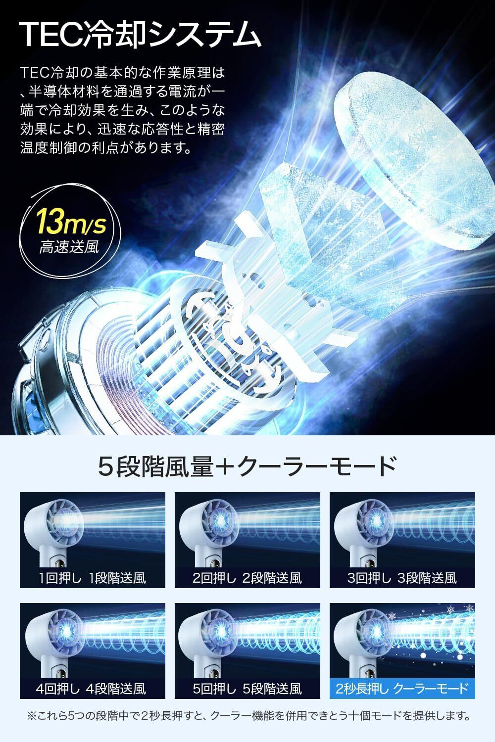 【5段階風量調節・LEDディスプレイ】ファンのボタンを押すだけで、自然風、弱風、中風、強風、超強風の5段階に風量を調節でき、使用シーンに合わせて涼しさを調整できます。これら5つの段階中で2秒長押すと、クーラー機能を併用できとう十個モードを提供します。LEDデジタルディスプレイ搭載、各段風量および冷却モードを非常に明確に表示できます。また、充電中に緑色の点滅ライトが表示され、充電完了時には常に緑色の点灯ライトが表示されるため、よりスマートな使用状況を把握することができます。