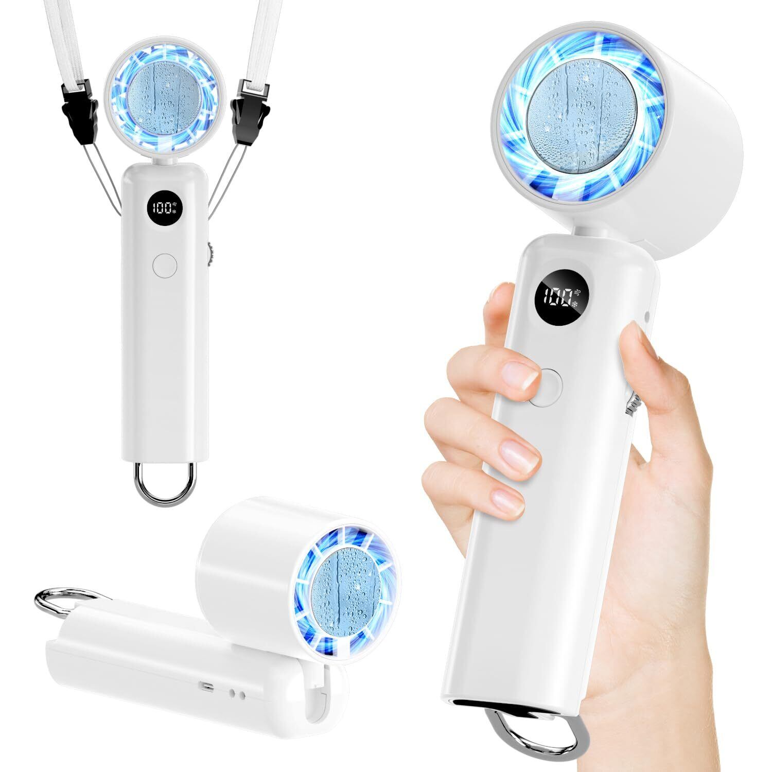 ハンディファン 冷却プレート 【SP暴風モード付き & -26℃瞬間冷却】 ペルチェ 携帯扇風機 手持ち 扇風機 ハンディ 軽量 小型 100段階風量 強化7枚羽根 強力 静音 6800mAh大容量 急速充電 Type-C充電式 4WAY (首掛け/卓上/手持ち/腰掛け) ファン 熱中症対策 通勤 通学 オフィス アウトドアなどに適用 (ホワイト) | KSショップ