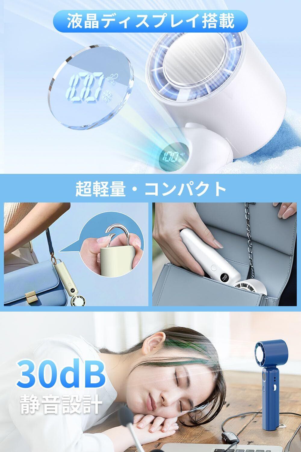 【見やすい智能表示パネル & 安心安全設計】 高精細液晶ディスプレイを搭載し、風量レベル・動作モード・バッテリー残量・充電状態をリアルタイムで一目確認。直感的なワンボタン操作で各種設定を簡単に切り替えられます。さらに、過熱防止・過負荷保護・短絡防止などのインテリジェントセーフティシステムを内蔵。お子様からご年配の方まで、安心・安全にお使いいただけます。