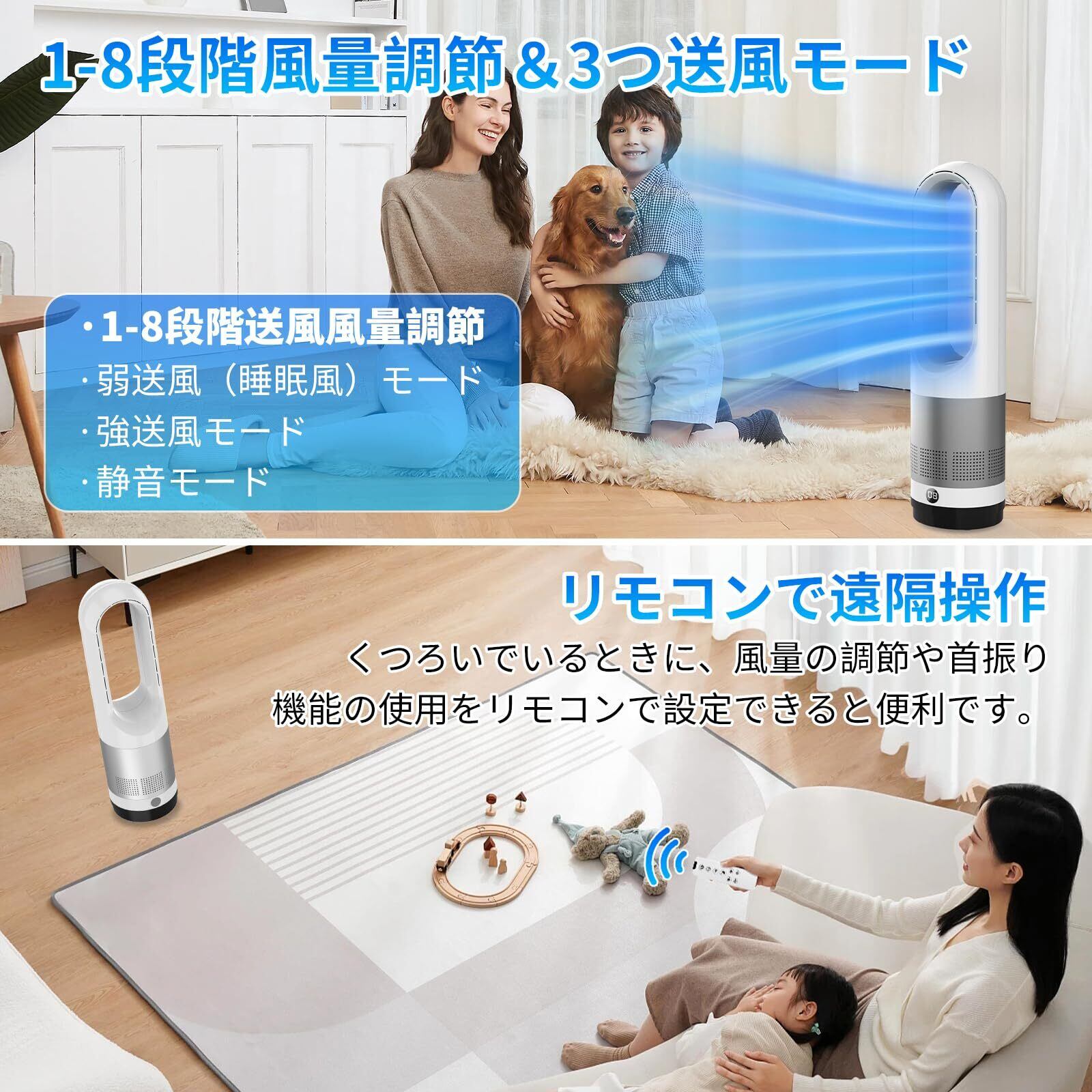 【2025最新進化・静音・ DCモーター節電】扇風機羽なし タワーファン 8段階風量調節 100°自動首振り 強風&微風&おやすみモード 省エネ 大風量 9Hタイマー 静音 羽根なし扇風機 リモコン操作 リビング扇風機 サーキュレーター スリムファン コンパクト 自動消灯 寝室/リビンク/書斎/キッチン/トイレ/ペット用 熱中症・暑さ対策 PSE認証済 日本語説明書 ホワイト