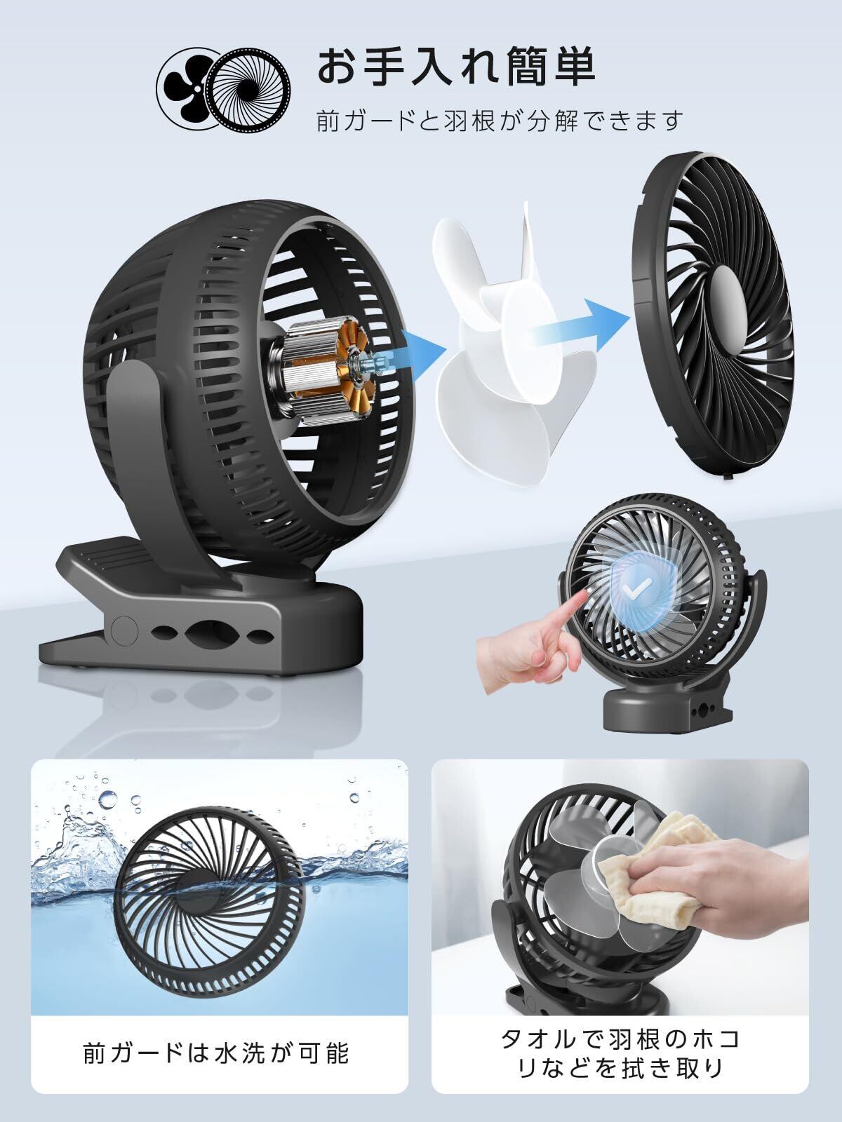 【超静音dcモーター&お手入れ簡単】ミニ扇風機はACモーターよりも細かな風量調整が可能なDCモーターを搭載し、超省エネ、静音性にも優れています。弱モードで約15dBと極めて静かで、寝室、オフィス、図書館など静かな環境でも周りに迷惑になりにくいのは嬉しいポイントです。本体は軽量でコンパクトサイズで、持ち運びがとても便利です。扇風機のカバーや羽根が取り外せますので、汚れても簡単に拭き取ることができます。