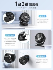 【3way仕樣&LEDライト機能】卓上、クリップ式、壁掛けの3つの使い方を備えたミニ扇風機は、いつでもどこでも手軽に涼風を楽しみます。部屋、キッチン、オフィス、車内、アウトドア、テントなど、室内外でどんな場合でも超便利に使い、暑い夏に欠かせないものであります!さらにLEDライト機能搭載しており、帰宅時、外出時、停電時も困らず、安心感いっぱい!
