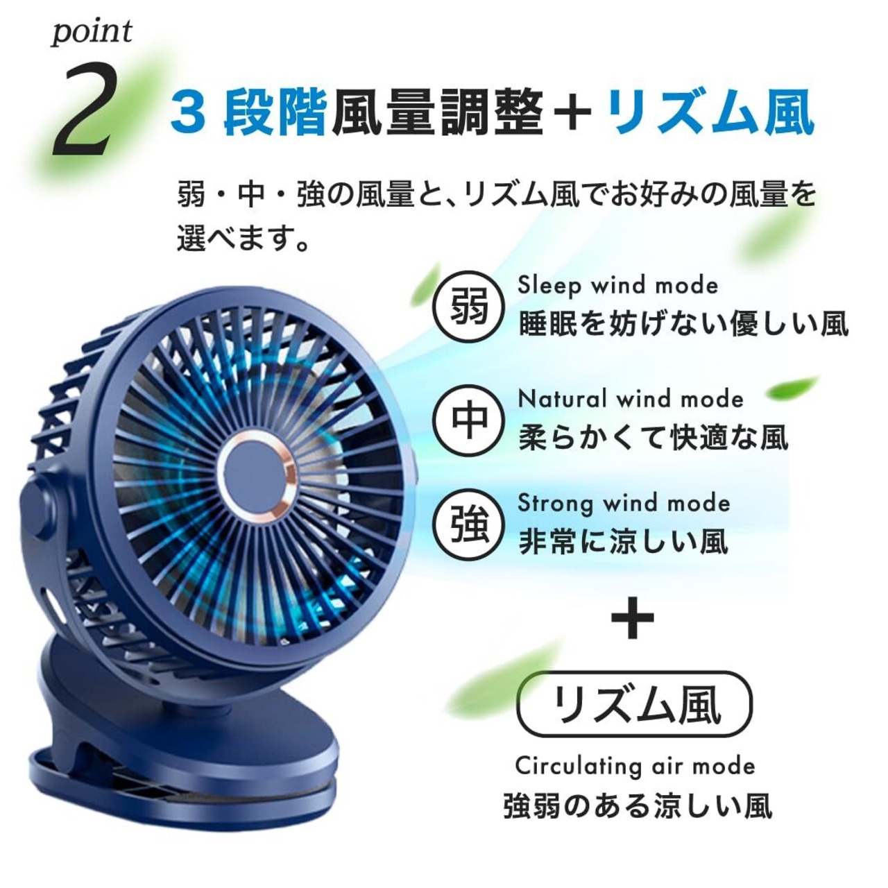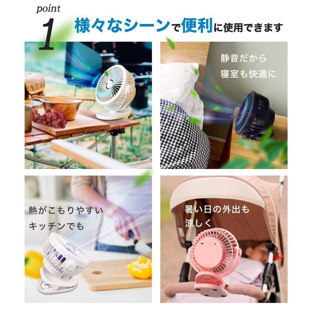 卓上扇風機 USB クリップファン 10000mAh 壁掛け 卓上 デスクファン USBファン 充電式 DCモーター ハンディ 小型 クリップ型 ミニ 静音 360度回転 3WAY 風量3段階 リズム風 DCモーター 強力 熱中症対策 アウトドア (ホワイト)