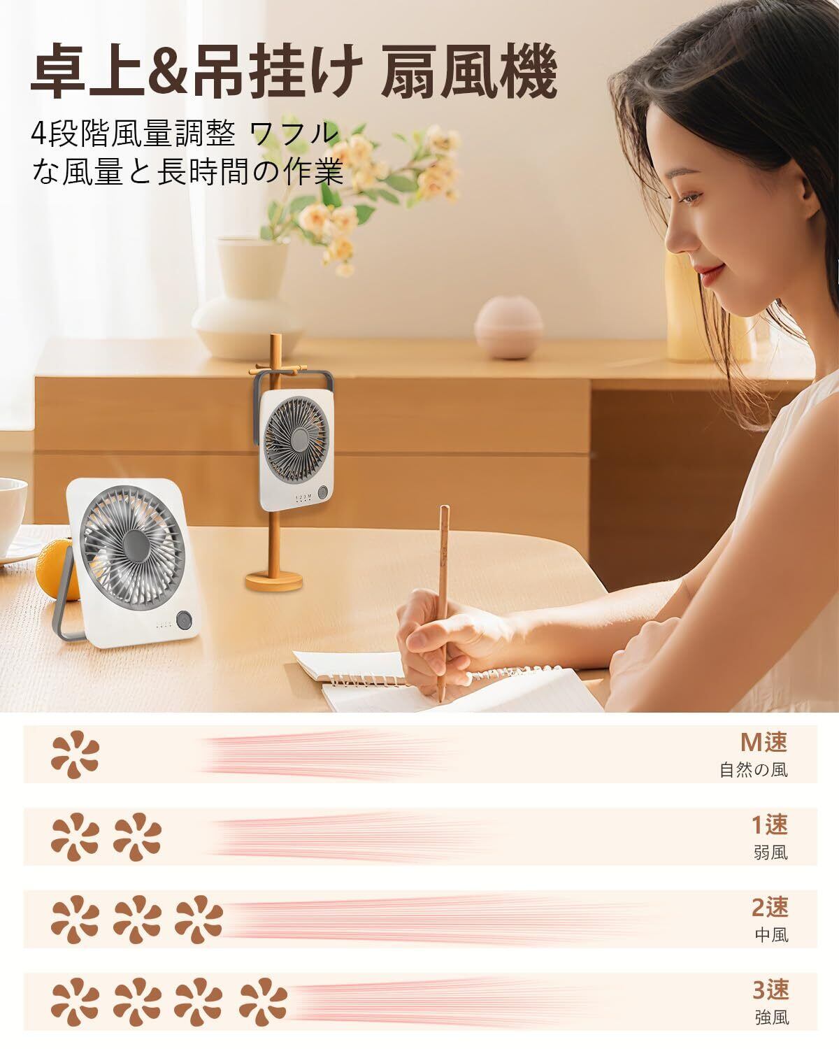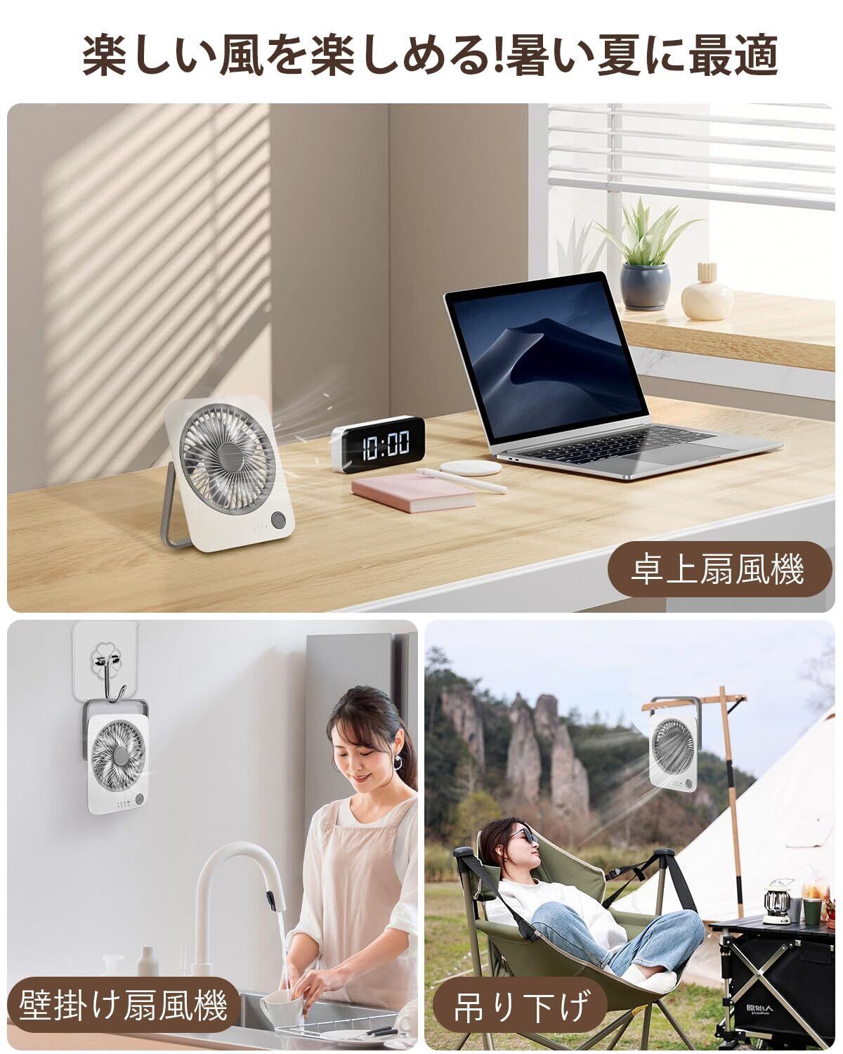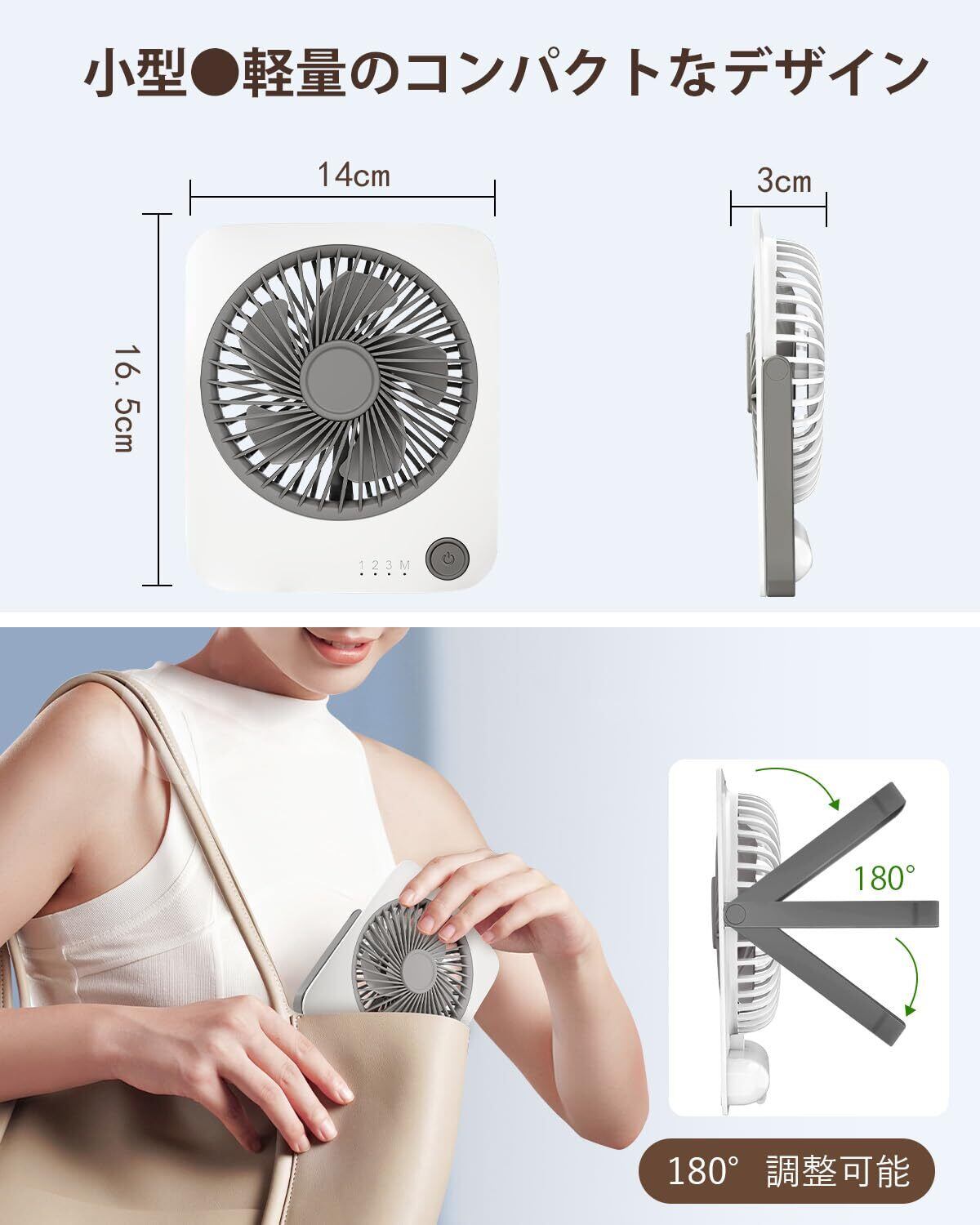 卓上扇風機 静音 折り畳み式 小型扇風機 卓上&壁掛けの2way仕様 風量4段階調節 180°角度調節可能 省スペース 熱中症対策 オフィス/自宅/学校/キッチン/屋外に最適 (ホワイト)