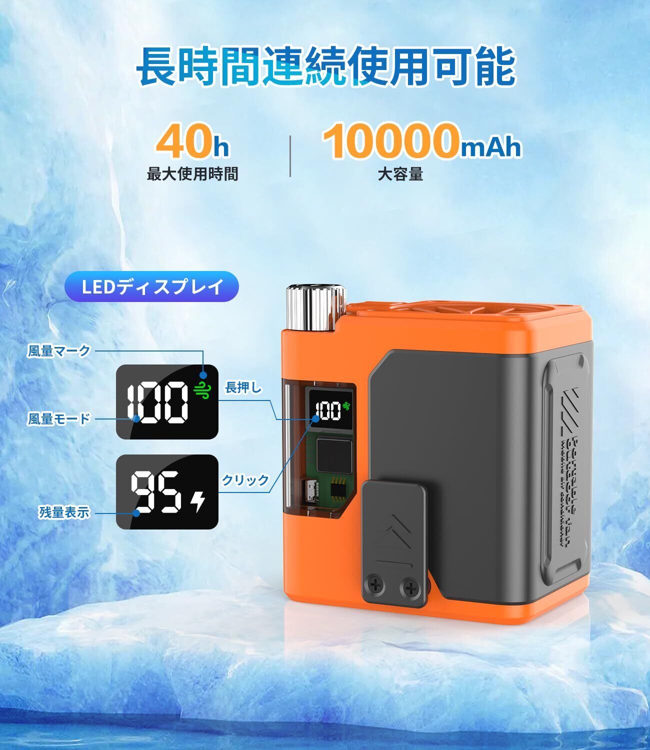 【10000mAh大容量バッテリー&最大40時間連続稼働】この夏、電池切れの心配から解放されましょう!業界をリードする10000mAh超大容量バッテリーを搭載した当社の腰掛け扇風機は、他社製品を圧倒する長時間駆動を実現!一般的な製品(5000mAh程度)の2倍の容量を実現しました。Type-C急速充電対応で、たったの充電時間で最大40時間の連続使用が可能です。 1回の充電で、丸2日間使い続けられる驚きの持続力!PCB回路の安全設計により、過熱・電力不足・ショートの心配なし。一日中快適な涼しさを、驚異のコストパフォーマンスでお届けします!