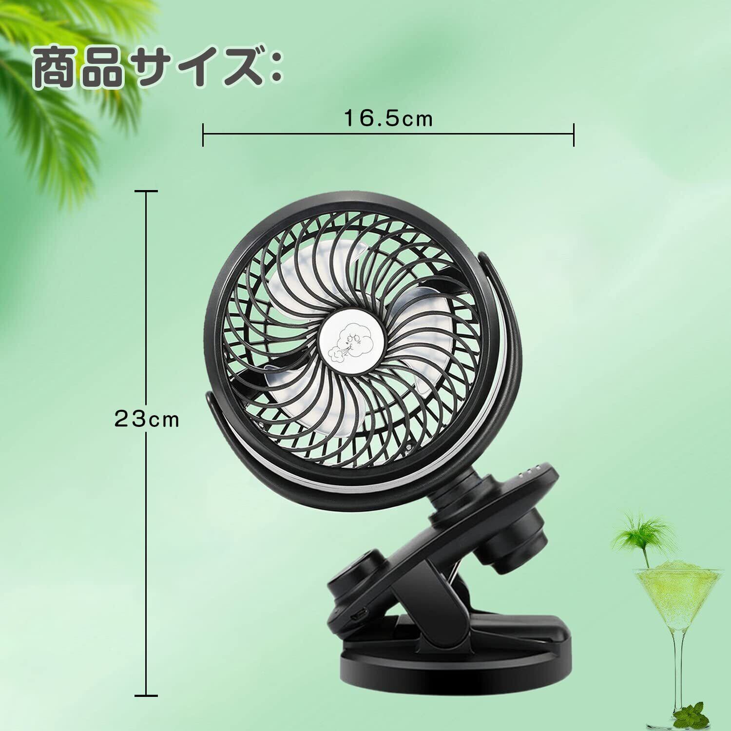【自動首振り&最大60時間連続使用】Vanazo 卓上扇風機 USB扇風機 無段階風量調節 クリップ 卓上 最大60時間連続使用 usb充電式 静音 6畳 強風 小型 USBファン パワフル送風 アロマ/虫除け機能 専用スポンジ付属 仕様:16.5x23cm