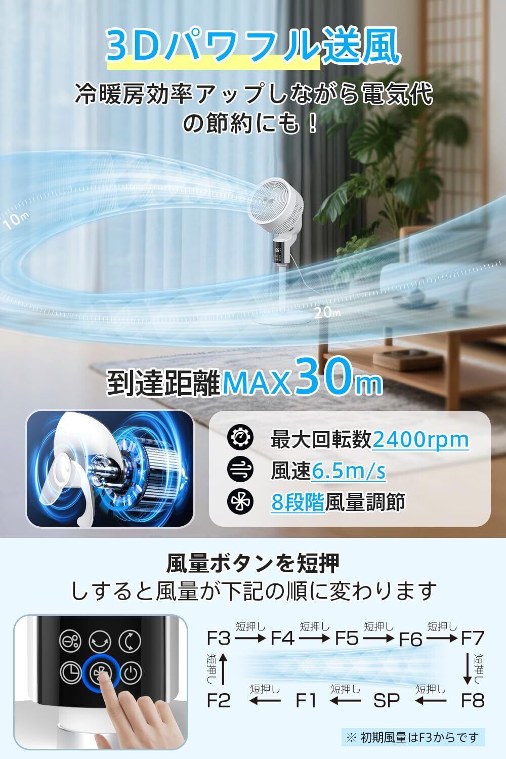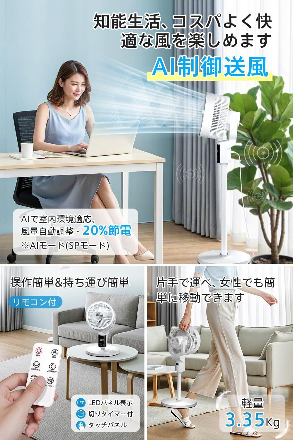 【2025新設計 & AI搭載】 サーキュレーター 扇風機 3D 自動首振り (上下左右 360°パワフル送風 日本製DCモーター) リビング & 卓上扇風機 AI空気循環 マイナスイオン 空気清浄消臭対応 最大30畳対応 360°全方向8段階風量調整 3段階高さ 省エネ 12時間タイマー付 アロマ対応 リモコン節電対応 冷房補助/除湿/換気 暑さ対策 PSE認証 日本語説明書 (ホワイト)