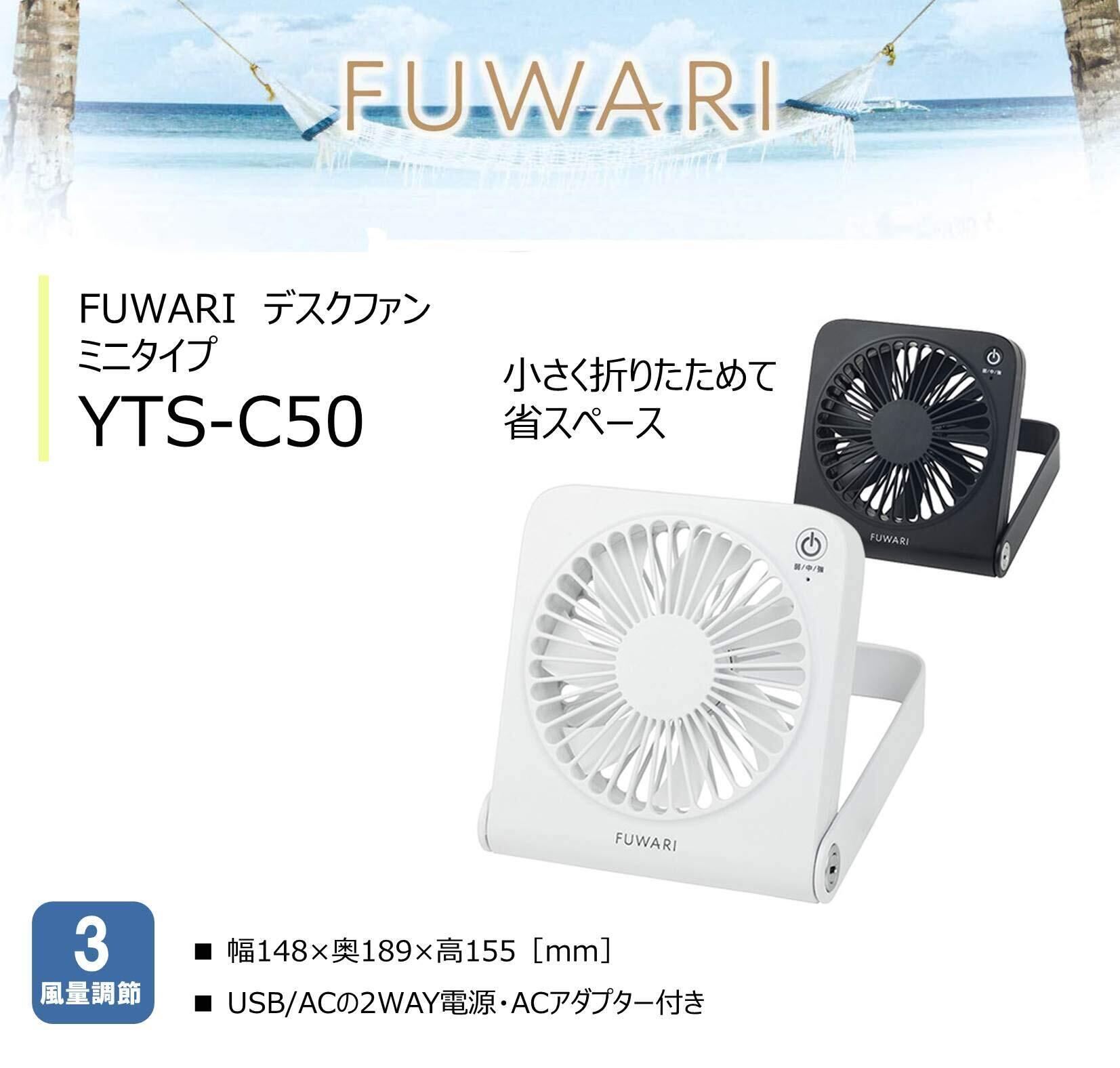 [山善] 扇風機 FUWARI ミニデスクファン PUSHスイッチ 7枚羽根 風量3段階調節 2WAY電源(USB/AC) ブラック YTS-C50(B) [メーカー1年]