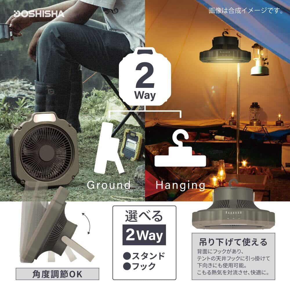 【アウトドアに最適】 ドウシシャ WindGEAR 扇風機 アウトドア向け 20㎝ LEDライト付 防水機能(IPX4) 2電源対応(充電式・USB電源) 風量4段階 収納袋付 ブラウン | KSショップ