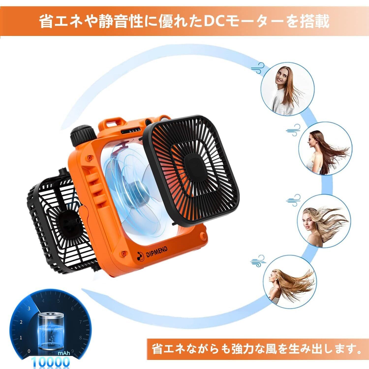 キャンプ 扇風機 アウトドアファン 自動首振り 10000mAh大容量 Type-C充電式 携帯扇風機 LEDライト付き 小型 強風 静音 吊り下げ式 アウトドア 室内 持ち運び便利 (オレンジ+ブラック) | KSショップ