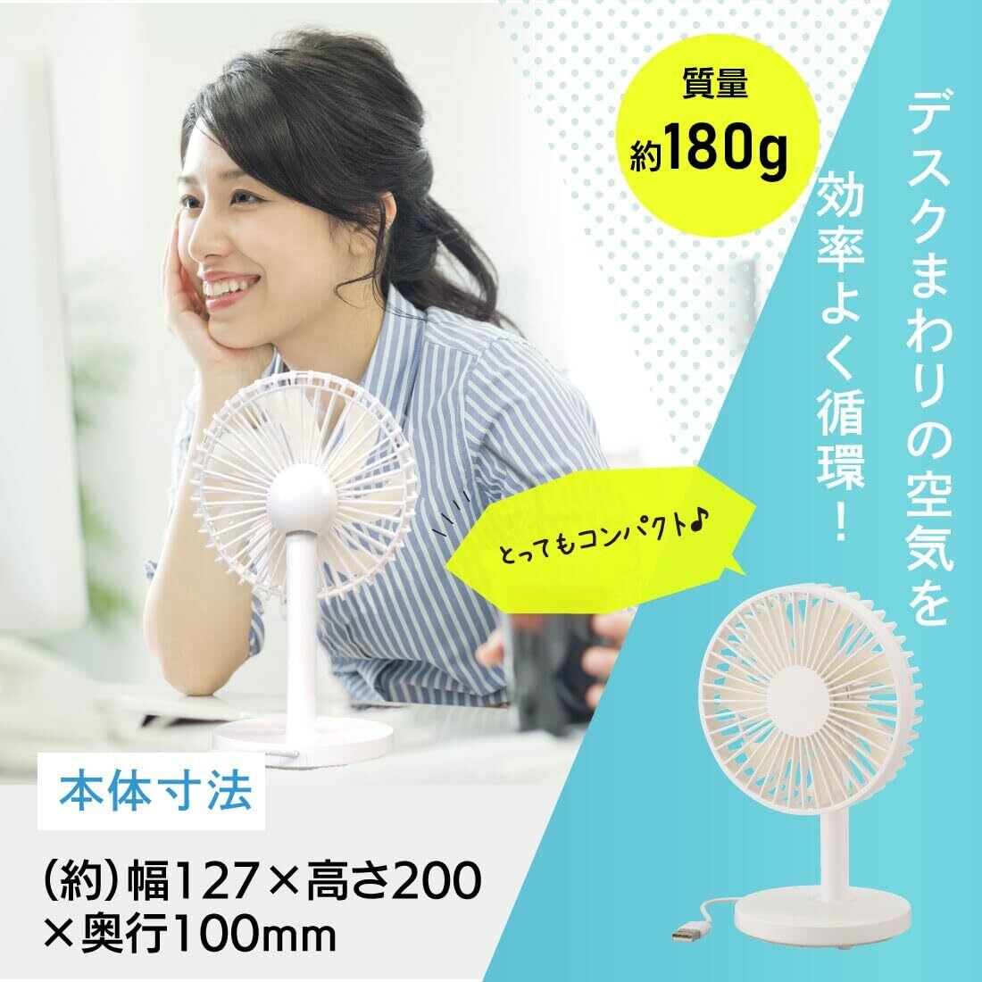 【 特 長 】 ◆風量3段階切替の卓上DC扇風機 ◆USB電源 ◆7枚羽根 ◆上下4段階に角度調整できます ◆本体カラーはホワイト