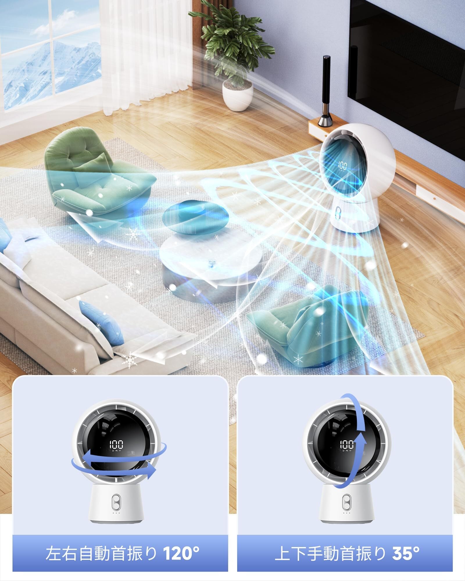 卓上扇風機 サーキュレーター 空気循環ファン 扇風機 卓上コードレス 大風力 28dB静音設計 USB充電式ファン リモコン付き 強力冷感 自動首振り パワフル送風 コンパクト タイマー機能 小型 キャンプ 風量5段階調節 広角送風 節電対策 猛暑対策 省エネ 7枚羽根 ポータブル リビング 車中泊 (クラシックホワイト)