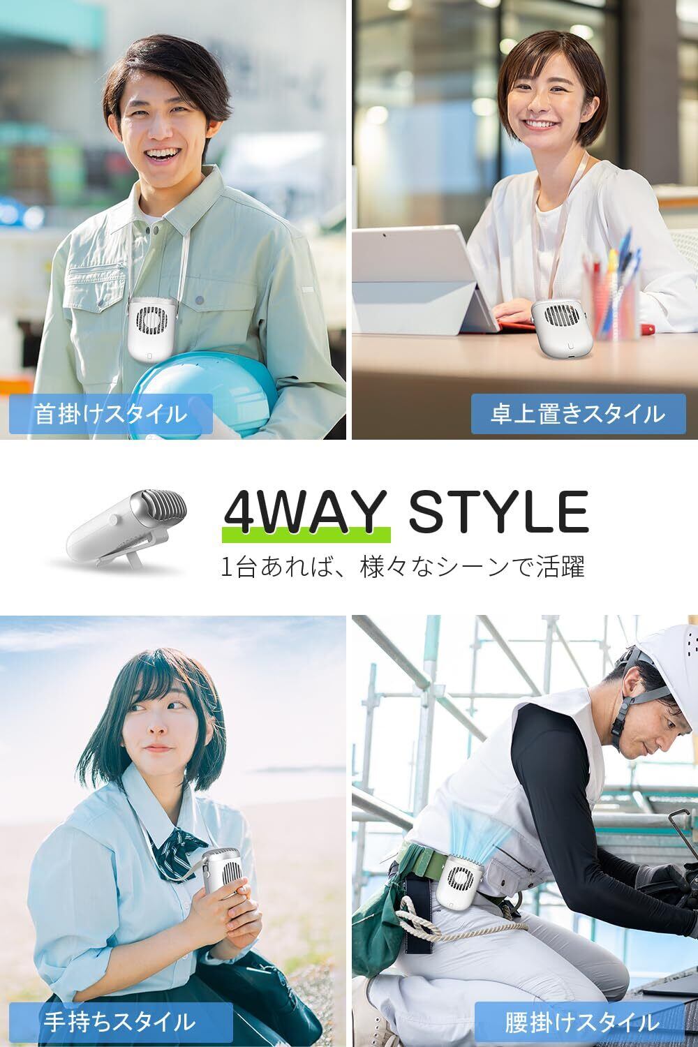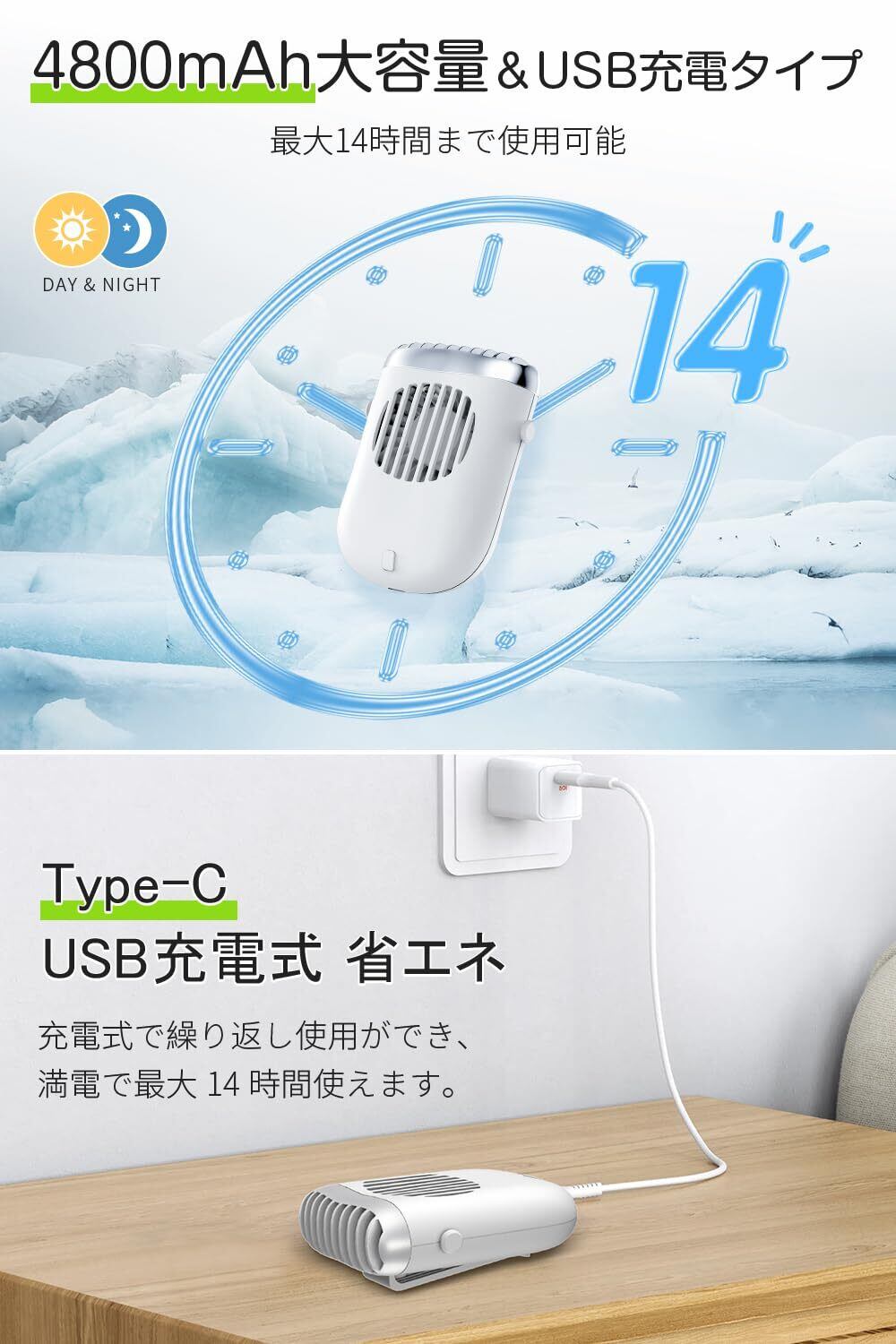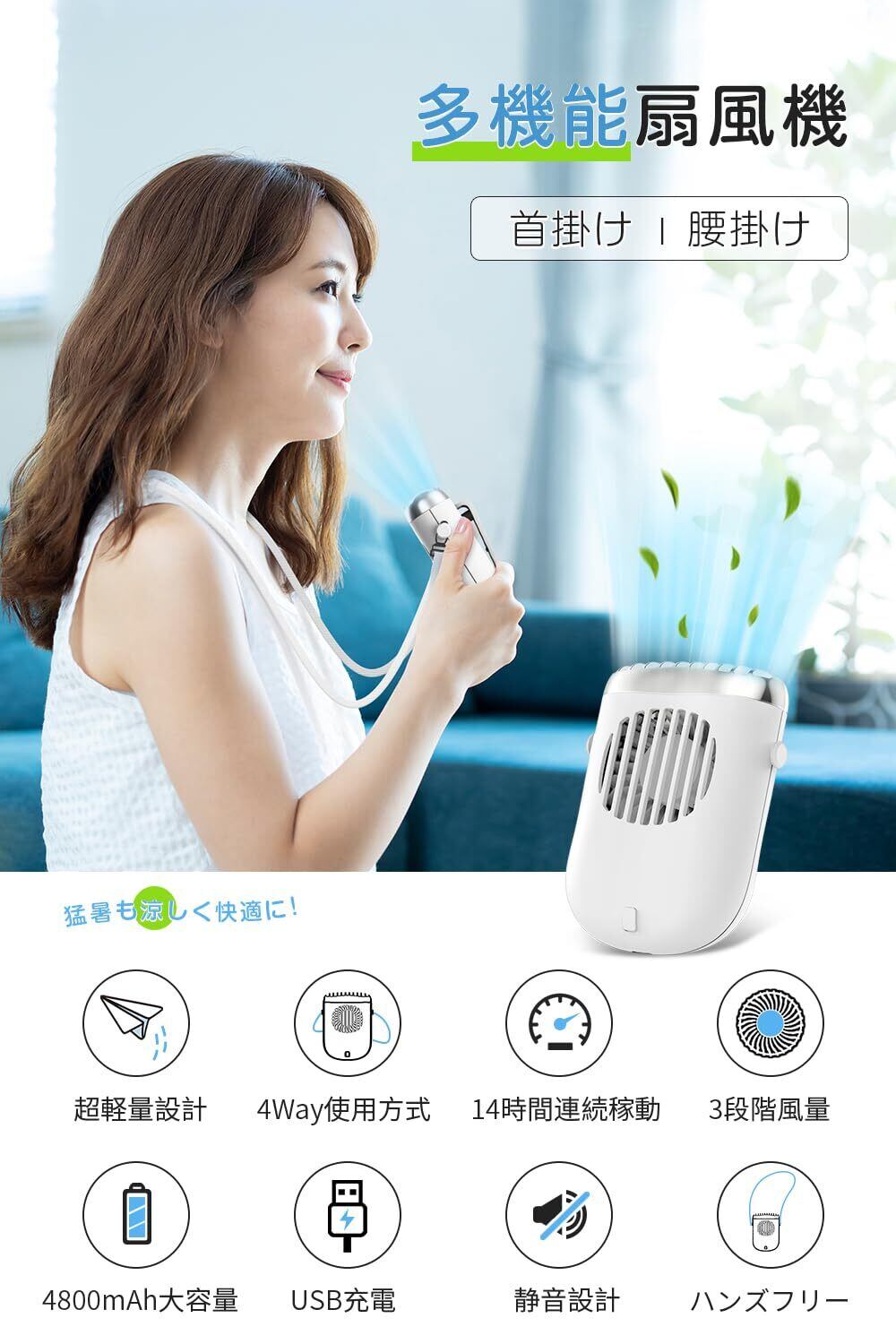 【2025夏革新 一台4役】 携帯扇風機 首掛け扇風機 強力 4WAY対応 (首掛け/腰掛け/卓上/手持ち) 腰掛け扇風機 大風量 ポータブル USB-C充電式 超軽量 静音設計 4800mAh長時間稼働 最大14時間使用可能 ハンディファン 小型 ミニファン 3段階風速 汗だく解消対応 通勤・通学・アウトドア作業に最適 男女兼用 持ち運び便利 夏の必需品 熱中症対策 (white)
