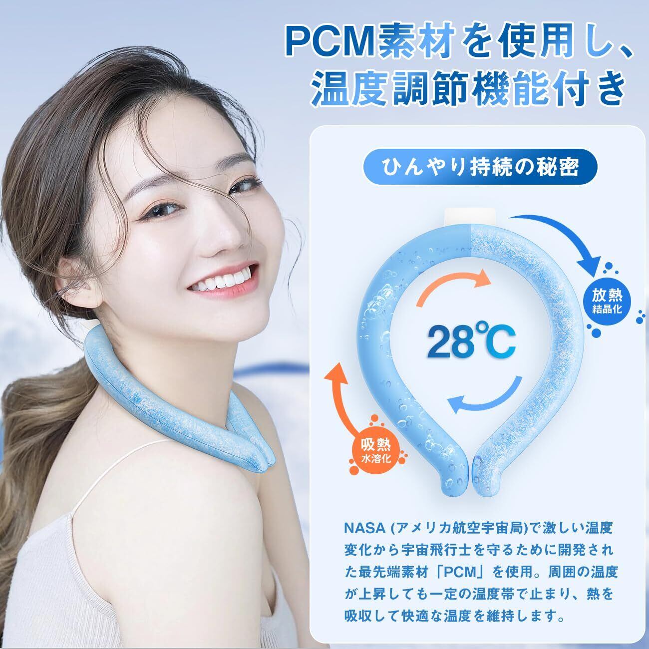 【2025年最新開発したPCM】:アイスネックリング持続時間を最大し、ひんやり感が今までの倍以上になります。クールネックリングは28℃以下で自然に凍結し、屋外屋内どこでも繰り返しお使いいただけるアイテムです。優れたPCM素材を使用しているので、安心して使用できますし、繰り返しお使いいただけます。