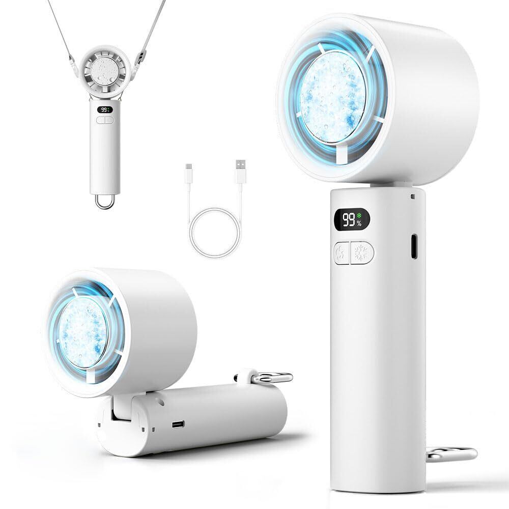 【2025年夏新設計・ -20℃瞬間冷却】ハンディファン 冷却プレート 手持ち扇風機 強力送風 折り畳み 携帯扇風機 7枚羽根 100段階風量調節 6800mAh大容量 クーラー機能 首掛け Type-C急速充電 LED画面 軽量 卓上 ストラップ カラビナ付き 熱中症対策 暑さ対策 花火大会/スポーツ観戦/オフィス/アウトドアなどに適用 ギフト プレゼント (ホワイト) | KSショップ