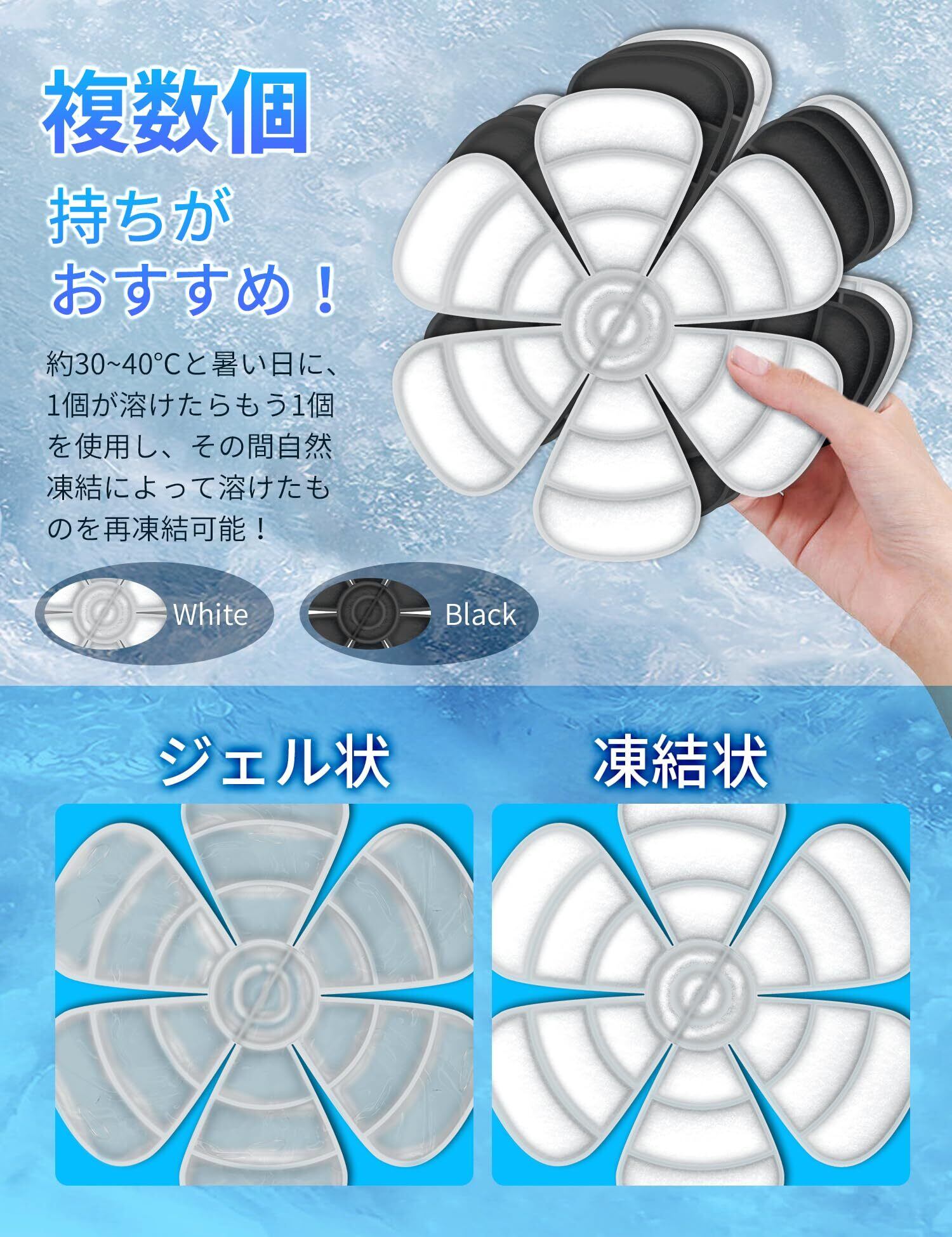 【ネッククーラーと同じ最先端素材PCMを採用】PCMとTPUは両方とも、冷却グッズに使用できる最新の環境に優しい素材です。大人も子供も体に害を与えることなく使用でき、非常に実用的で安全です。28℃以下で自然に凍結し、水や他の冷却グッズよりも迅速に冷却効果を発揮し、長時間冷たい状態を保ちます。屋外屋内どこでも繰り返し使用可能なアイテムです。