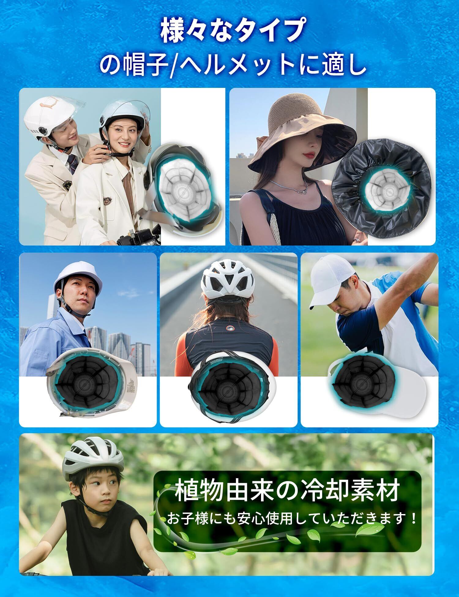 【2025夏新開発・PCM 冷却パッド・瞬間冷感】暑い真夏の季節でも帽子につけて、瞬間冷感!この冷感ヘルメットライナーは帽子ににつけてから使えます。この頭部分を冷やすと全身に冷やすことができる為、全身を効果的にクールダウンし熱中症予防の効果が見込めます。はるかに涼しい体験のために、2つのヘッドクールを交互に使用してください。