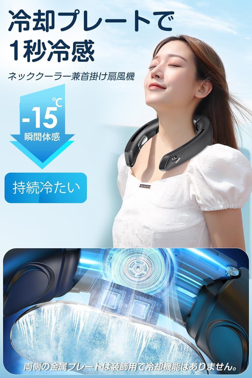 【2025新登場·急速冷却ネッククーラー】新たに冷却機能を搭載した2024年最新の首掛け扇風機!冷却プレードの設計で、冷却力の飛躍的な向上を実現し、従来の首掛け扇風機を一変させます。従来品と比べて、半導体搭載式首掛け扇風機は30%以上パワフルで2秒だけ冷感を感じ、体感温度は最大-15℃まで下げて暑さにさようなら!従来品の2倍以上の冷感面積で首元をしっかりカバーし、ソーダのような清涼感を実現します。暑い夏でも快適に過ごしましょう!