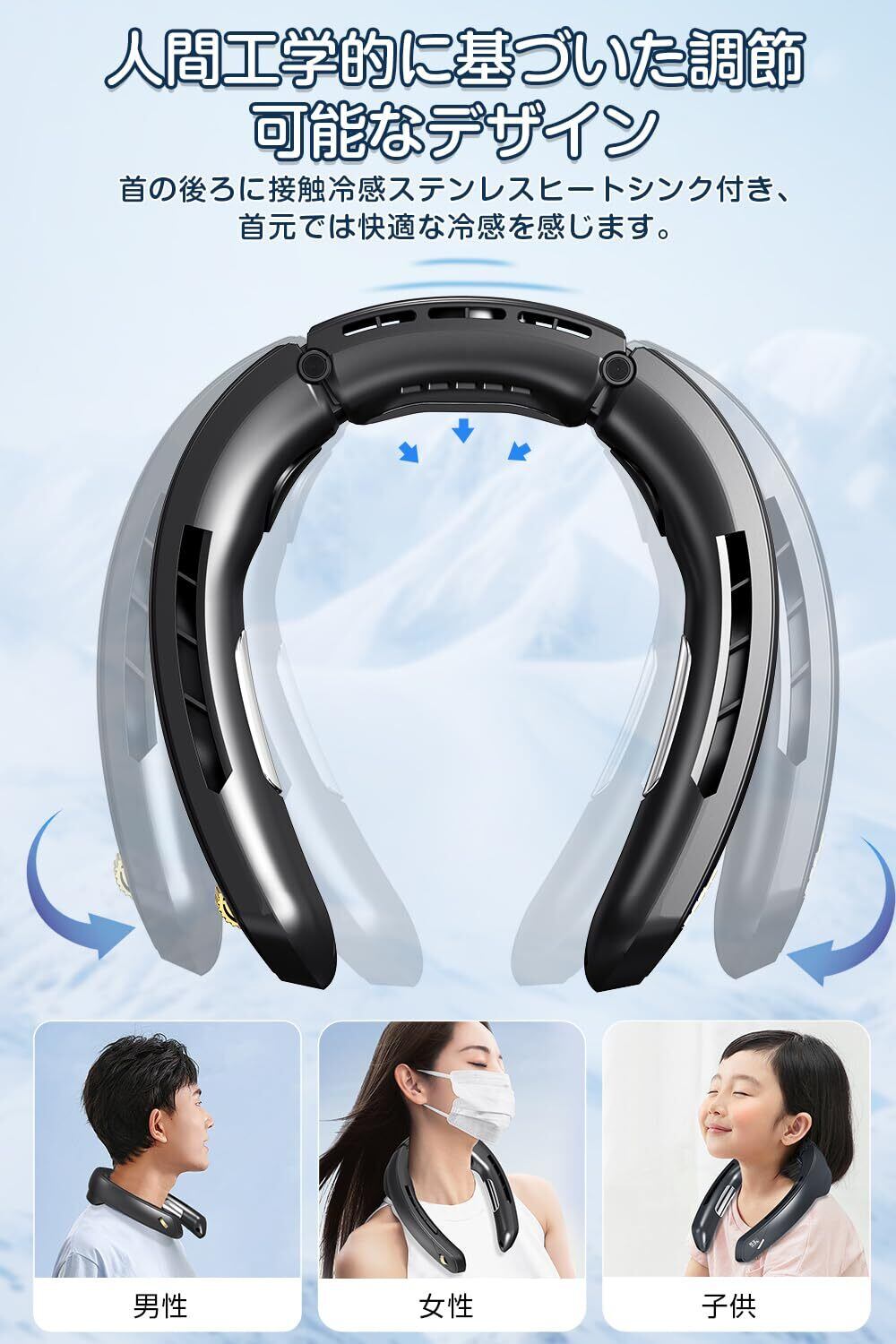 【低騒音設計&快適な使用感】弊店の携帯扇風機は人間工学に基づく、3Dネックライン曲線デザインでは、わずか330gの超軽量、首への負担をゼロに!調整が簡単で、年齢・性別を問わず、さまざまな体型の人の首にフィットします。動作音は35デシベル以下で、図書館などの静かな環境で使用しても他人の邪魔になりません。涼しい風を楽しみながら、もう迷惑な騒音はありません。
