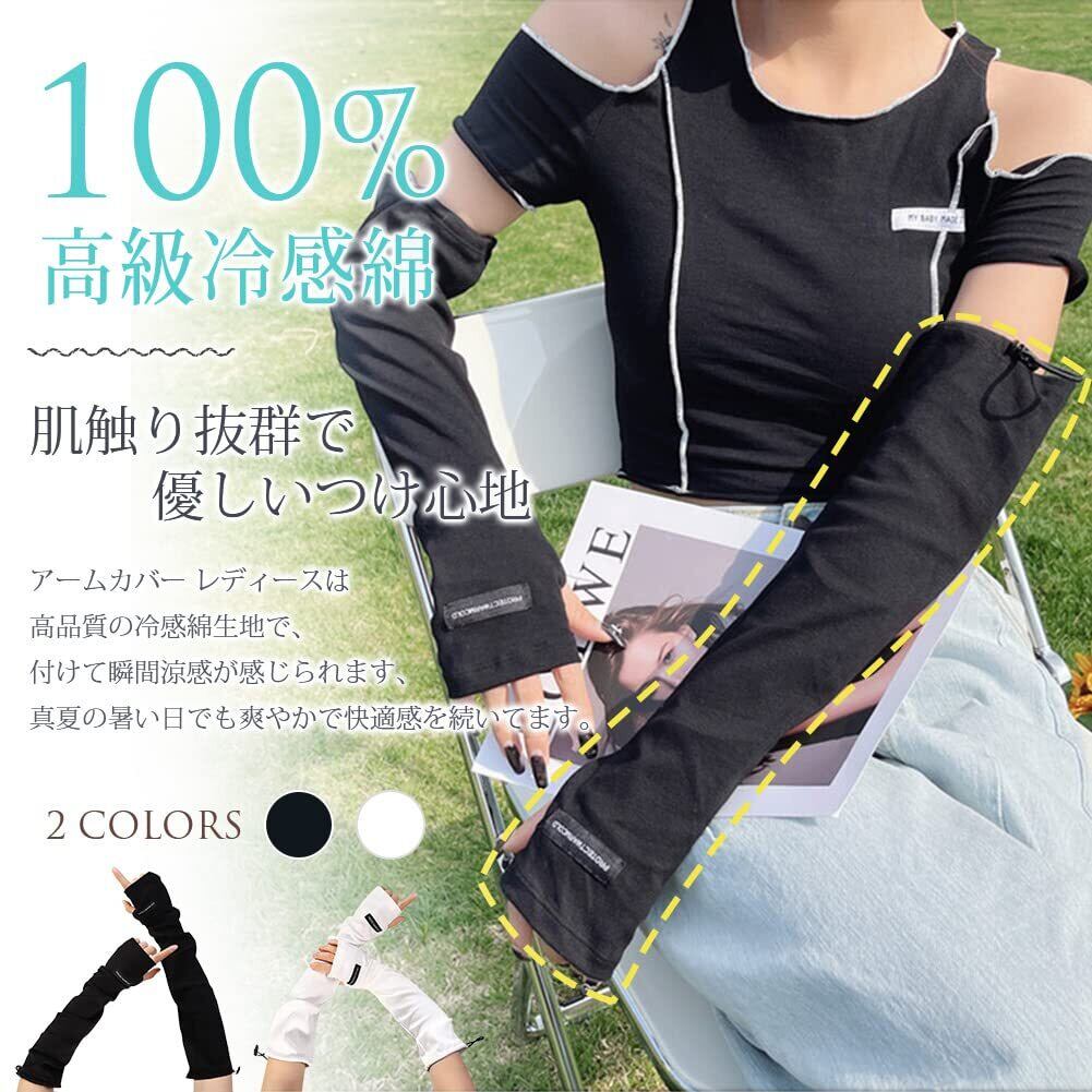 [PALAME] アームカバー レディース 【UPF50+認定品・高級冷感綿・締付感無し・指穴あり】 春 夏 秋 接触冷感 手の甲隠れ 調節コードつき 吸汗速乾 紫外線対策 日焼け止め ゆったり おしゃれ 可愛い 通気性 伸縮性 腕カバー 左右セット