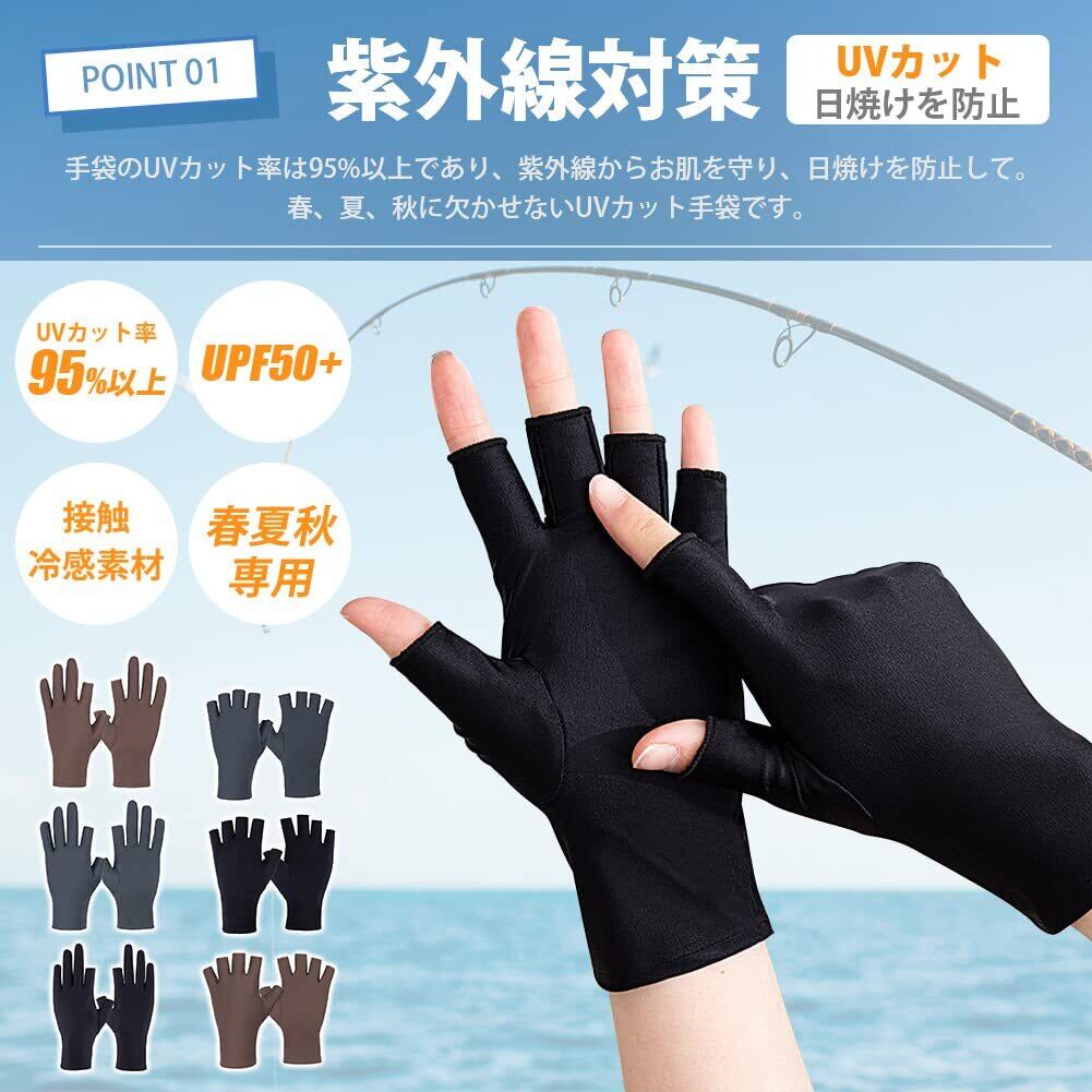 [Andeor] 手袋 メンズ 夏用 冷感 紫外線対策・UPF50+・指出し・細かい作業・タッチパネル対応 スマホ 薄手 軽量 日焼け防止 滑り止め おしゃれ 伸縮性 通気性 速乾性 春 夏 秋 釣り・ゴルフ・通勤・通学・自転車・運転・作業用