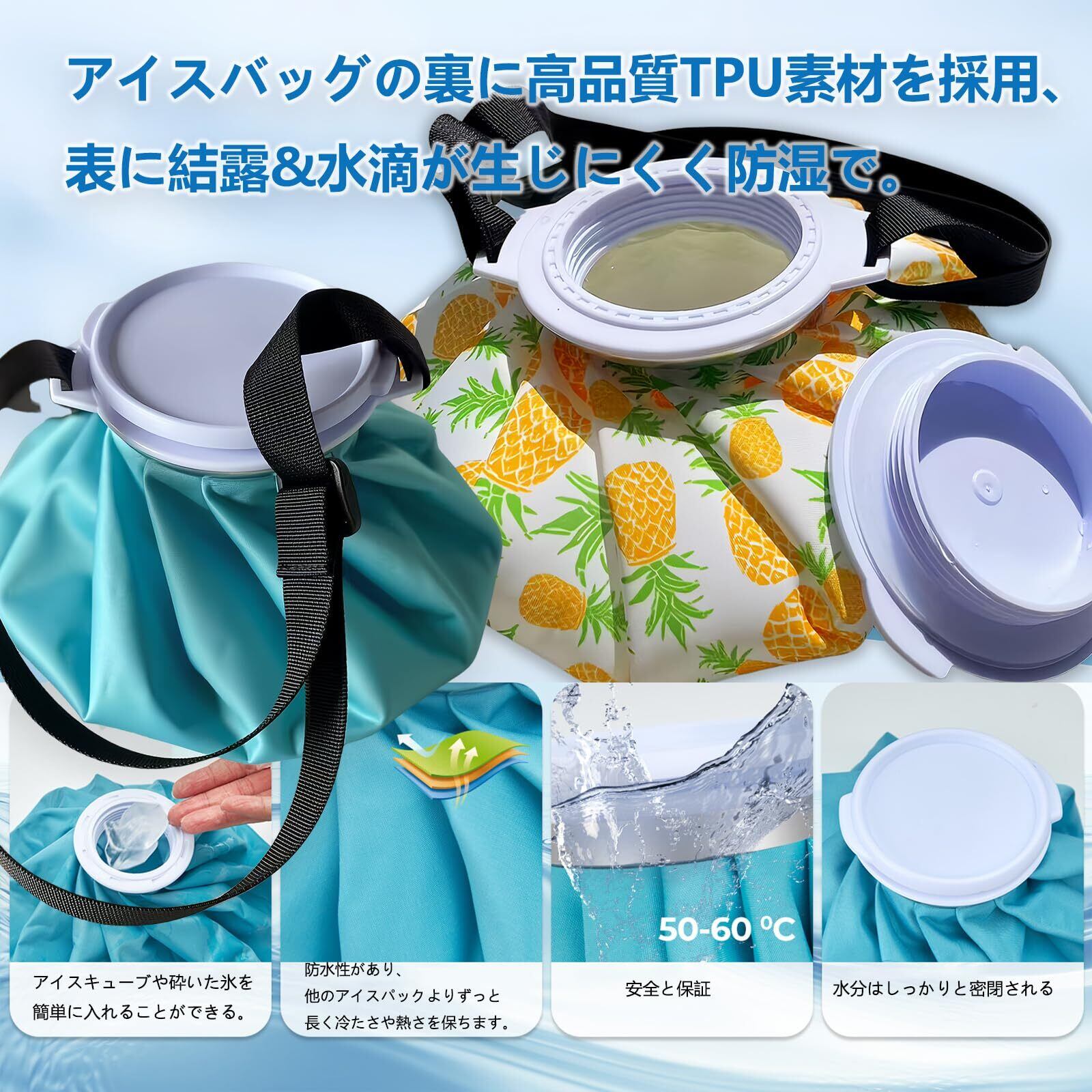 【高品質素材】アイスバッグの裏に高品質TPU素材を採用、表に結露&水滴が生じにくく防湿で。シリコン製のリングを採用したキャップで水漏れを防ぐ特殊な密閉構造で、スポーツや暑さ対策に最適な多目的アイシングバッグ。 ※氷嚢に少し塩を加えると、冷却時間が少し長くすることができます。