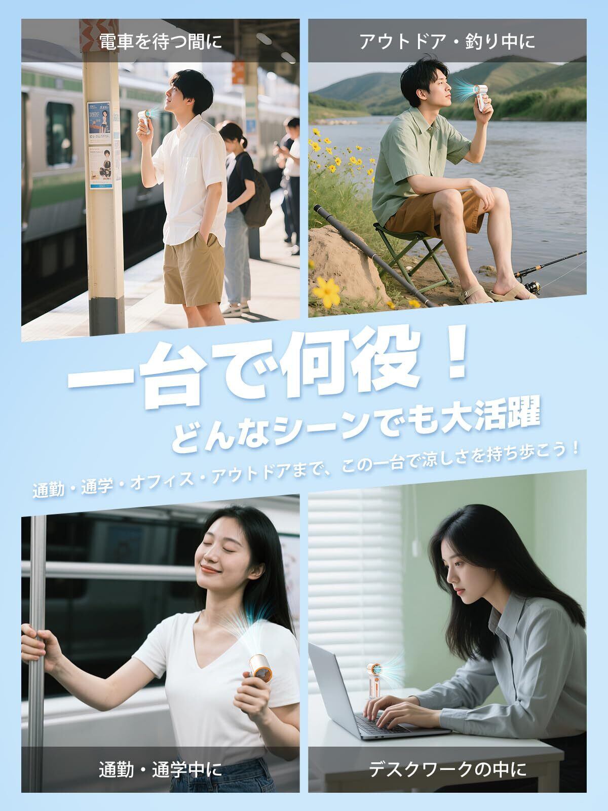 【2025限界突破・すごい扇風機・夏の必需品!】 TF01はパワフルな風量と静音性はもちろん、ファッションに合わせて選べる豊富なカラーバリエーションをラインナップして、今年も「持ち歩ける涼しさ」をお届けします。超高速回転モーターを採用し、より強く風をお届けする同時により静音です。暑い日に外を歩くときは最大風力で一気にクールダウン、オフィスや寝室では静かな優しい風を楽しむなど、シーンに合わせて自分に合ったちょうどいい風を細かく調整できます。父の日のプレゼントにも適用!また、底部には滑り止めパッドが付いており、卓上に置けば自立させ卓上扇風機としても便利に使えます。汗をかきやすい夏場でも、滑りにくいグリップデザインでしっかりホールドできます。