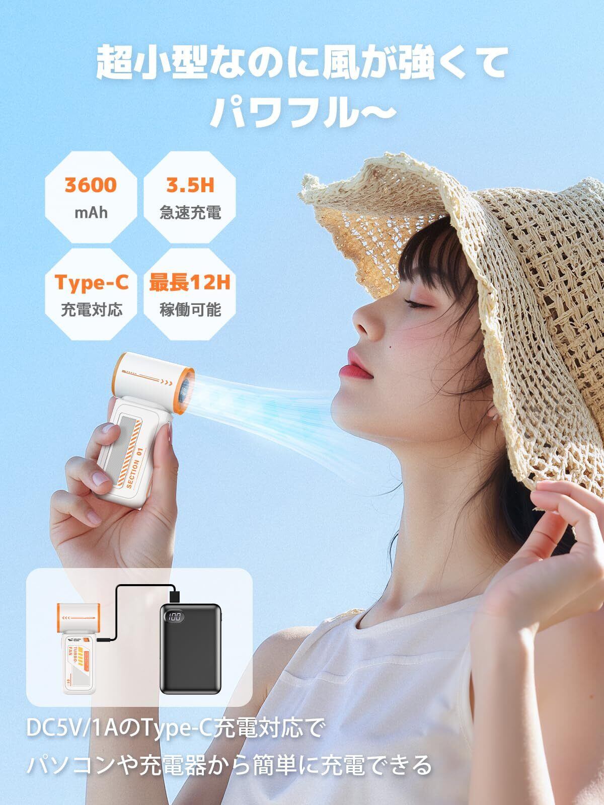 Smiling Shark ハンディファン TF01【2025夏新型・強力送風】携帯扇風機 手持ち/卓上/携帯 超強風100段階調節 3600mAh 12H長時間稼働 Type-C急速充電 LED残量表示 超軽量158g 超高速ブラシレスモーター 静音設計 安全ロック 小型 熱中症対策 手持ち扇風機 スポーツ観戦/工事/アウトドア/屋外作業/旅行 父の日 3色選択 日本語取扱説明書付き(ホワイト)