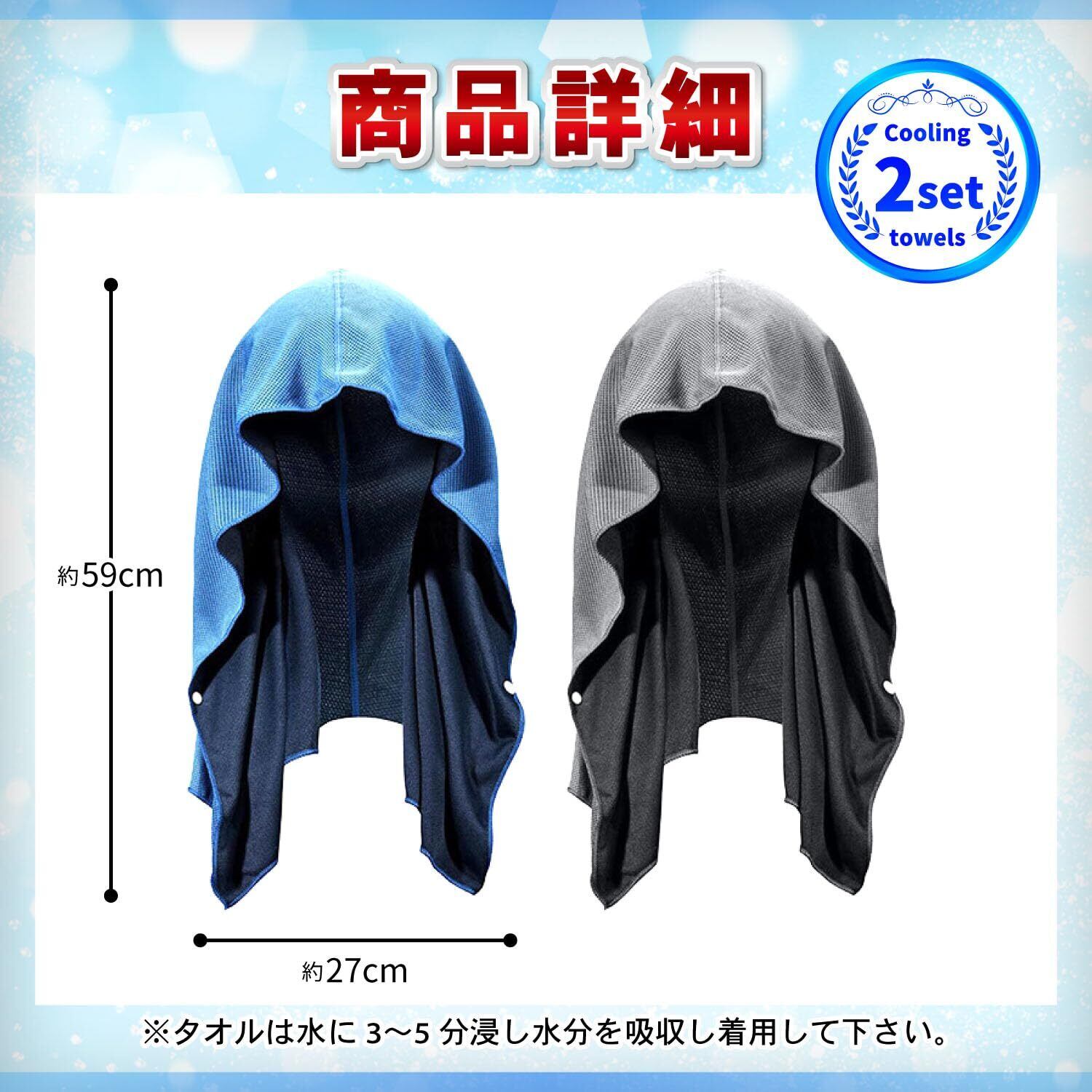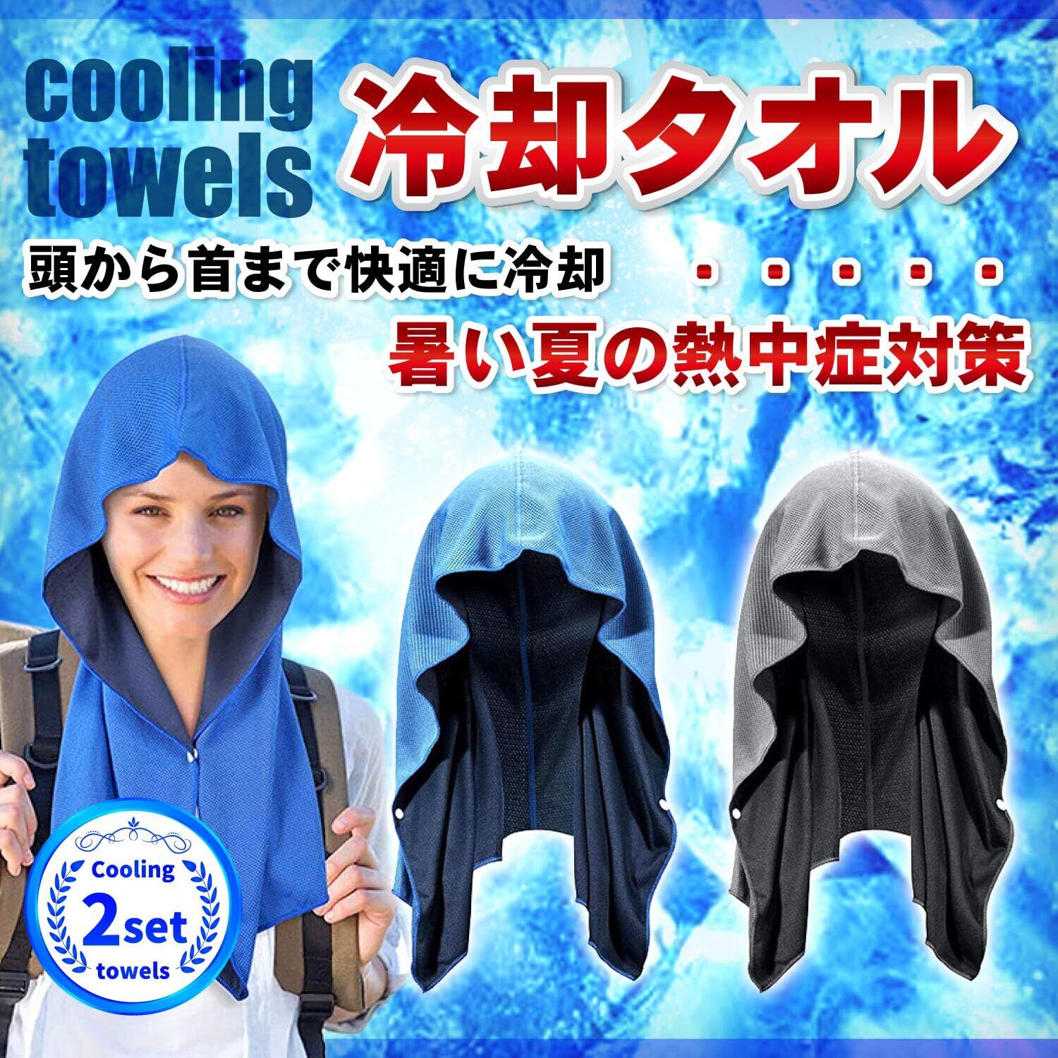 [Archnote] 冷感タオル 冷却タオル 首 冷感バンダナ クールタオル 熱中症対策 グッズ 暑さ対策グッズ 2枚セット (ブルー グレー)