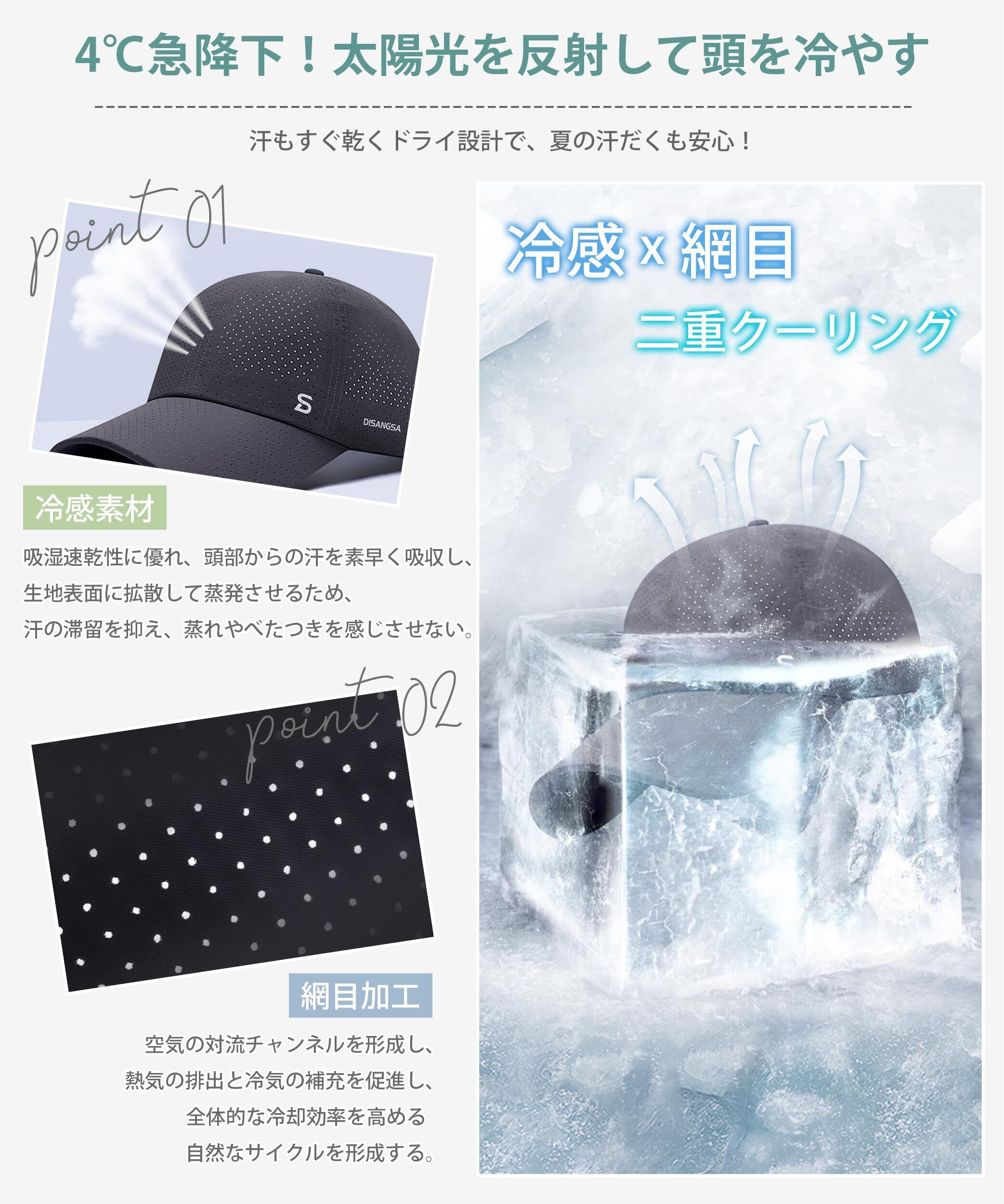 【4℃急降下で蒸し暑さ撃退・ドライに保ち】MOWOキャップは夏の暑さに対応した冷感素材を採用し、キャップ表面で太陽光を反射することで頭部の表面温度を直接に低下できます。内側のスウェットバンドが運動中の汗を素早く吸収し、キャップ内で頭部をドライに保ちながら、目や顔への汗の流下を防止します。キャップの素材による優れた速乾性で、洗濯後も即座に乾燥し、次回使用まで準備が整います。