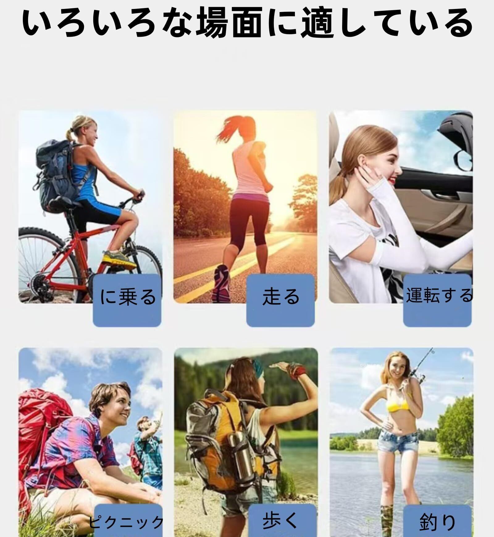 【様々なシーンに大活躍】紫外線をしっかりガードUVカット98%で、日焼け対策に嬉しいUVカット機能と接触冷感で、夏を楽しめるUVカットアームカバーです。日常生活、山登り、ウォーキング、ランニング、テニス、ゴルフ、釣り、ジョギング、自転車、運転、ガーデニング、屋外作業、レジャー、通勤、通学など、いつでも、どこでも快適に日焼け対策ができるアームカバーです。